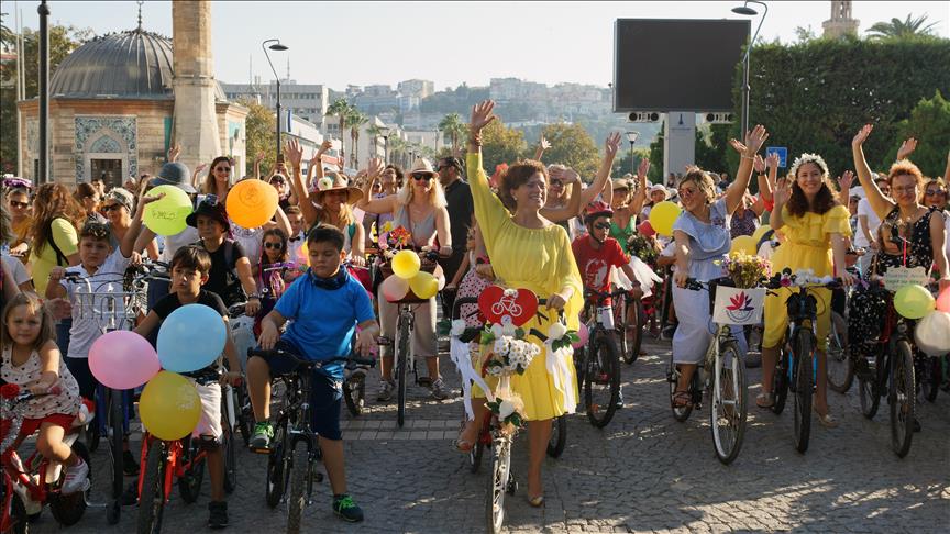 HATAY, TURKEY - SEPTEMBER 23 : Turkish women ride their bikes as they take part in "Fancy Women Bike Ride" within the EU's “Mobility Week" in Hatay, Turkey on September 23, 2018. ( Cem Genco - Anadolu Agency )Cem Genco