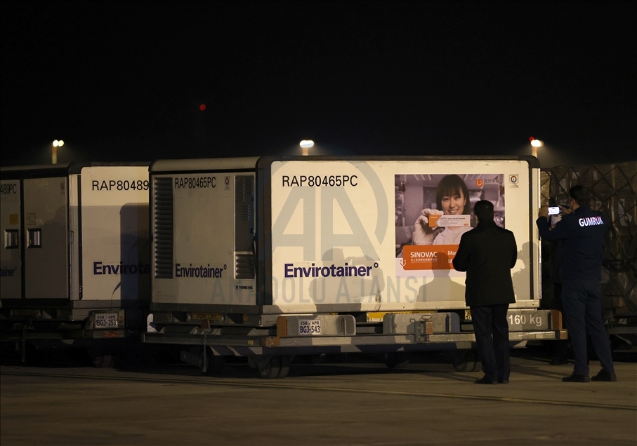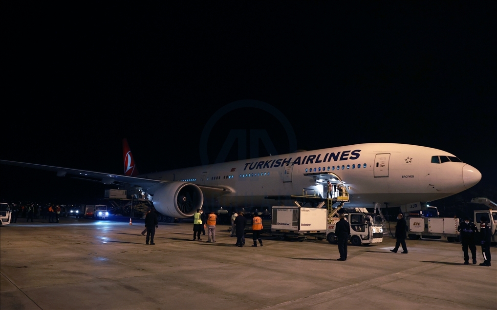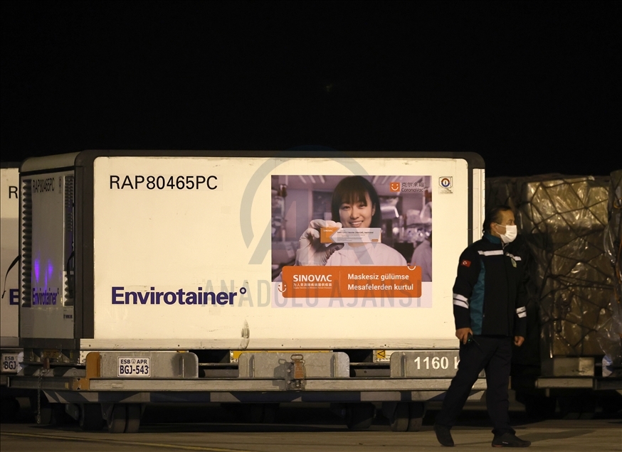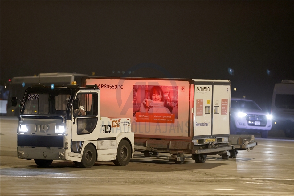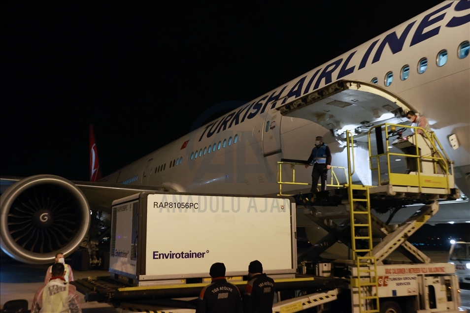 Turkish Airlines plane carrying SinoVac vaccines lands at Esenboga Airport in Ankara at 05.44 a.m. local time (0244GMT)