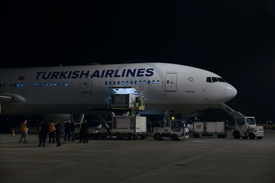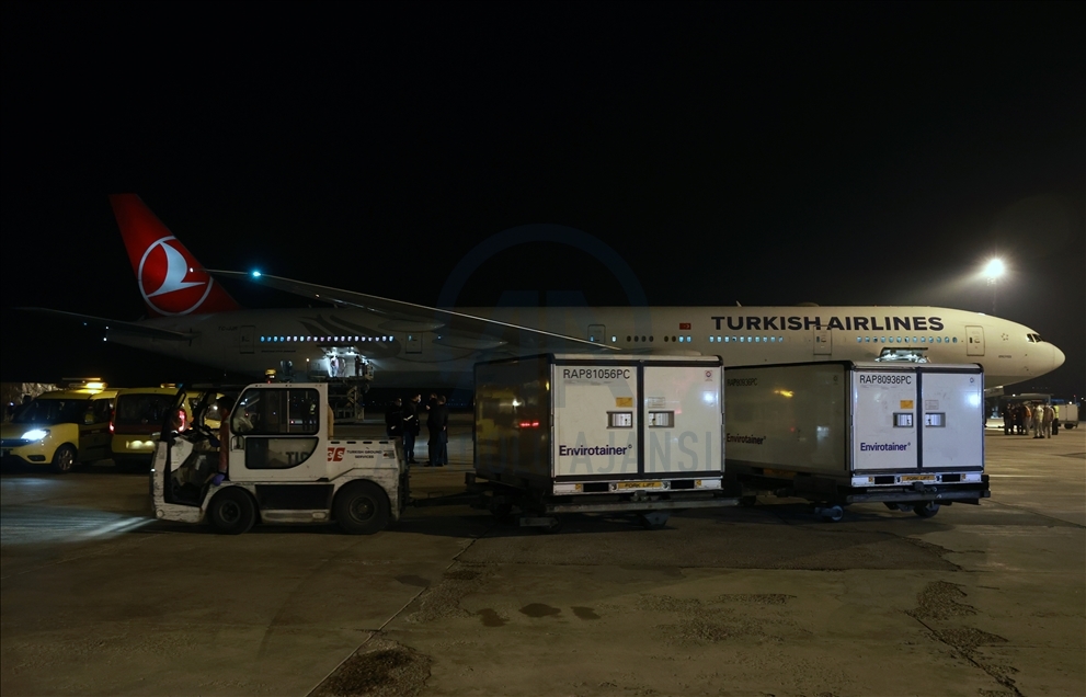 ANKARA, TURKEY - DECEMBER 30: Turkish Airlines plane carrying first batch of Chinese SinoVac COVID-19 vaccines is seen during upon its arrival at the Esenboga Airport in capital Ankara, Turkey on December 30, 2020. The Boeing 777 plane, which departed from Beijing with 17 containers of vaccines, landed at Esenboga Airport at 5.44 a.m. local time (0244 GMT). ( Aytuğ Can Sencar - Anadolu Agency )Aytuğ Can Sencar
