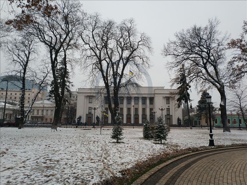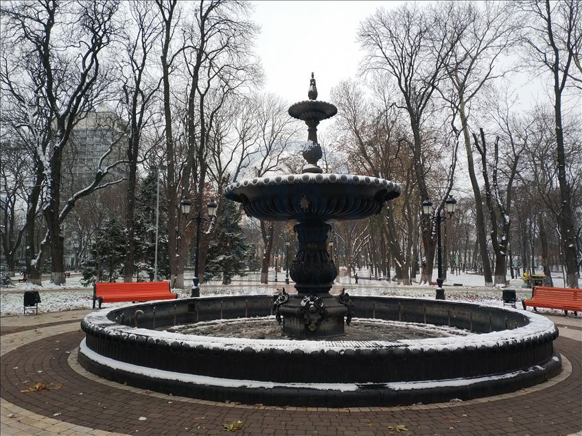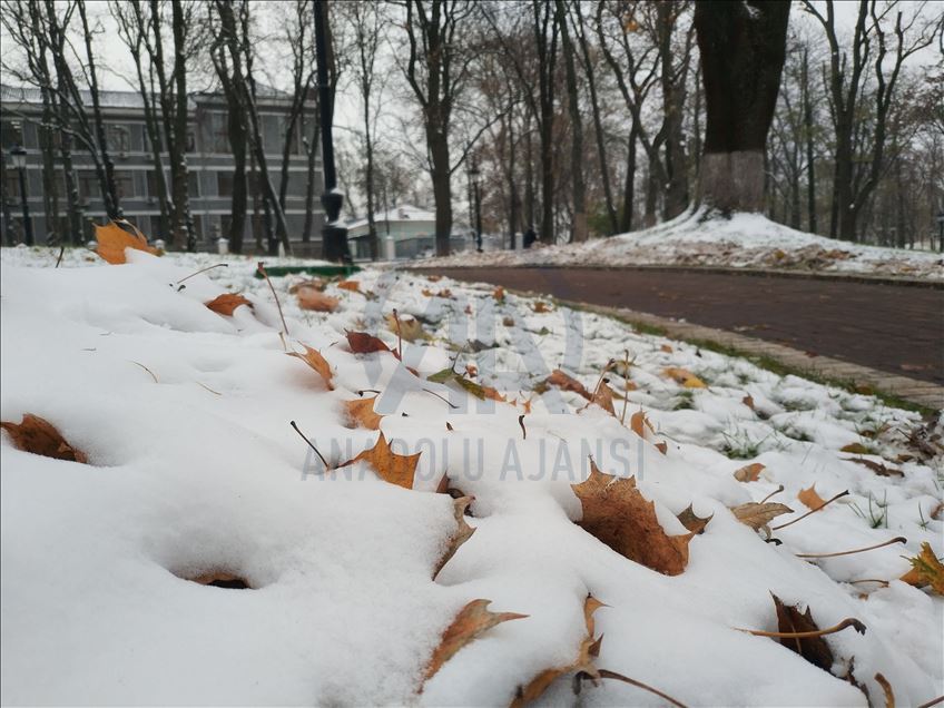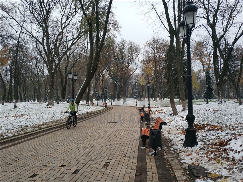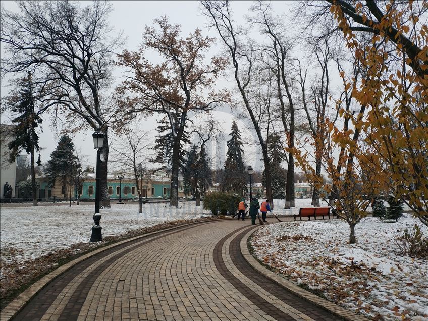 KIEV, UKRAINE - NOVEMBER 19: A view of Marinskiy Park after the first snowfall of this season in Kiev, Ukraine on November 19, 2020. ( Talha Yavuz - Anadolu Agency )Talha Yavuz