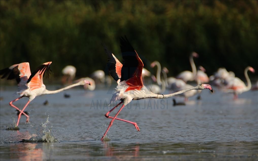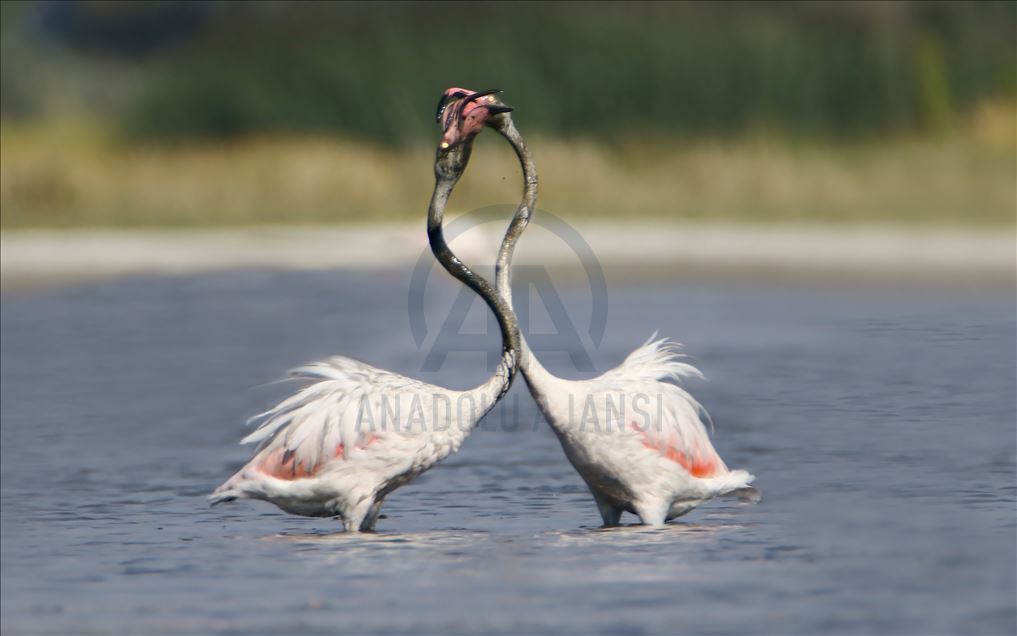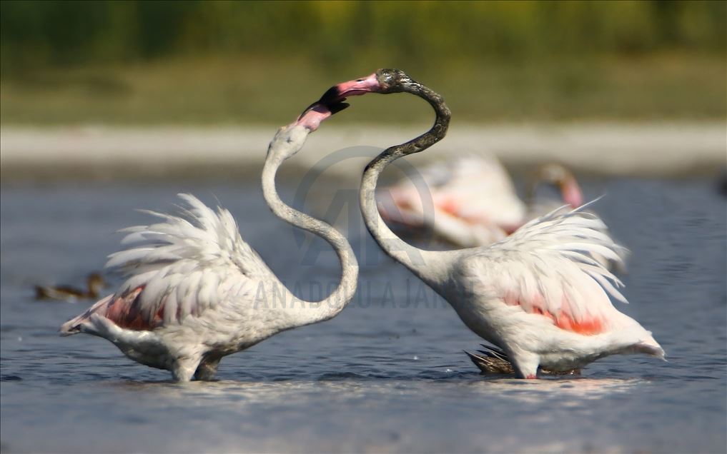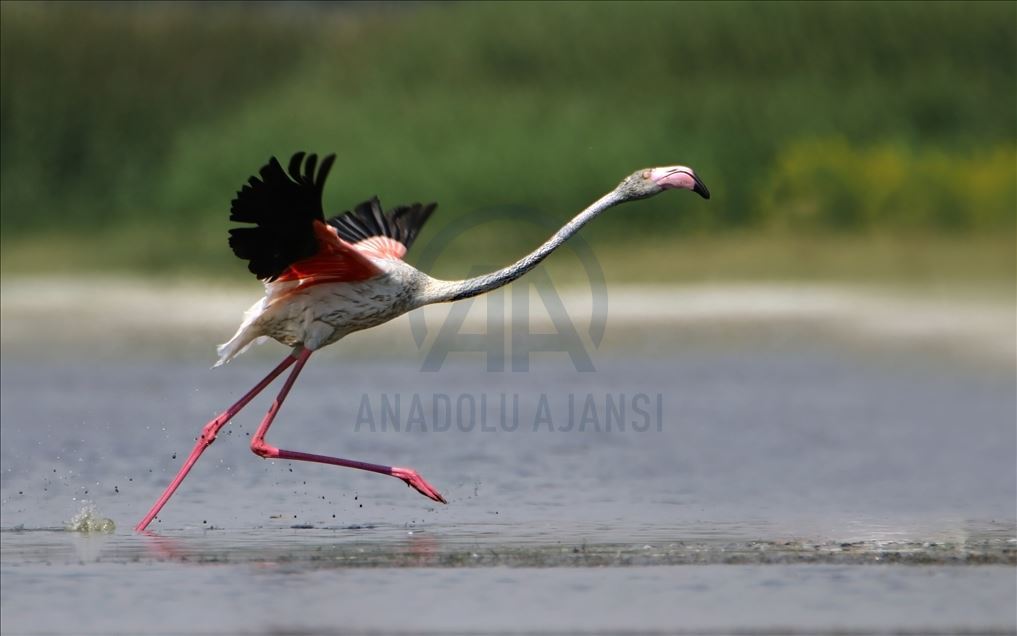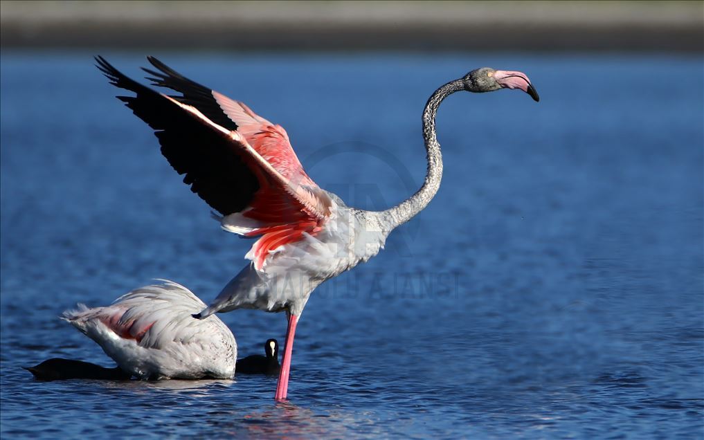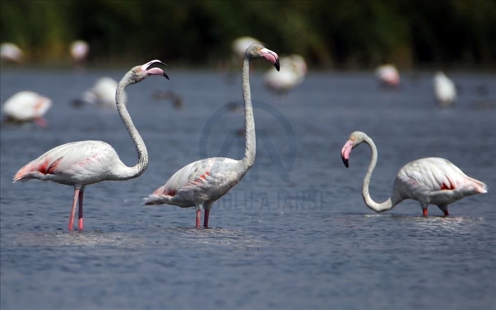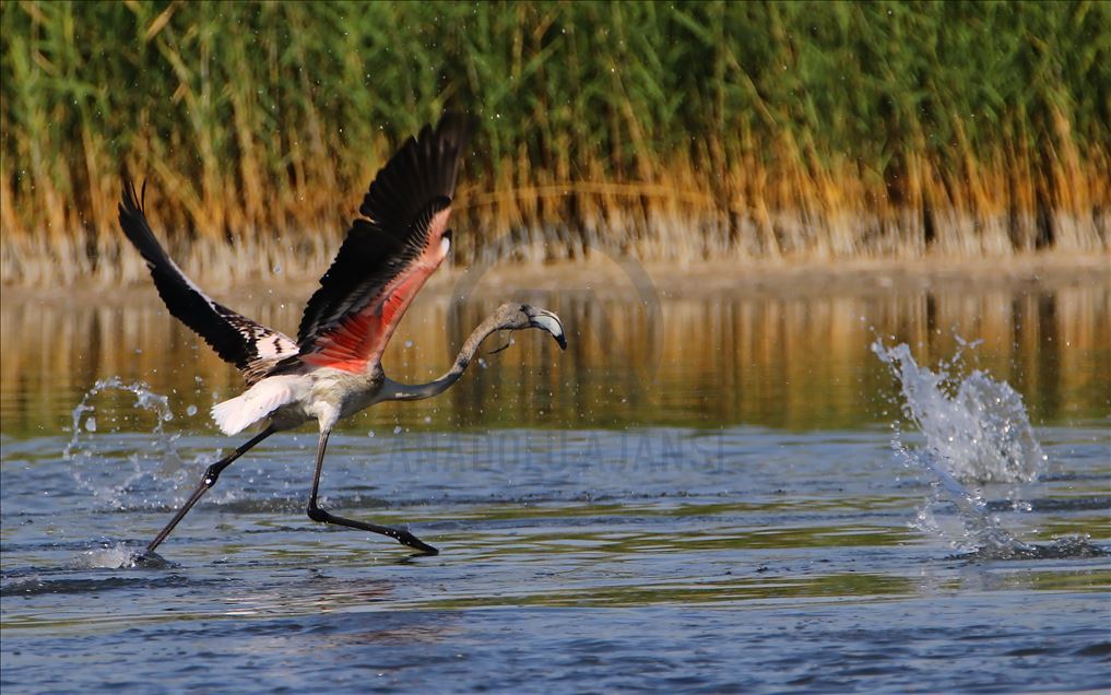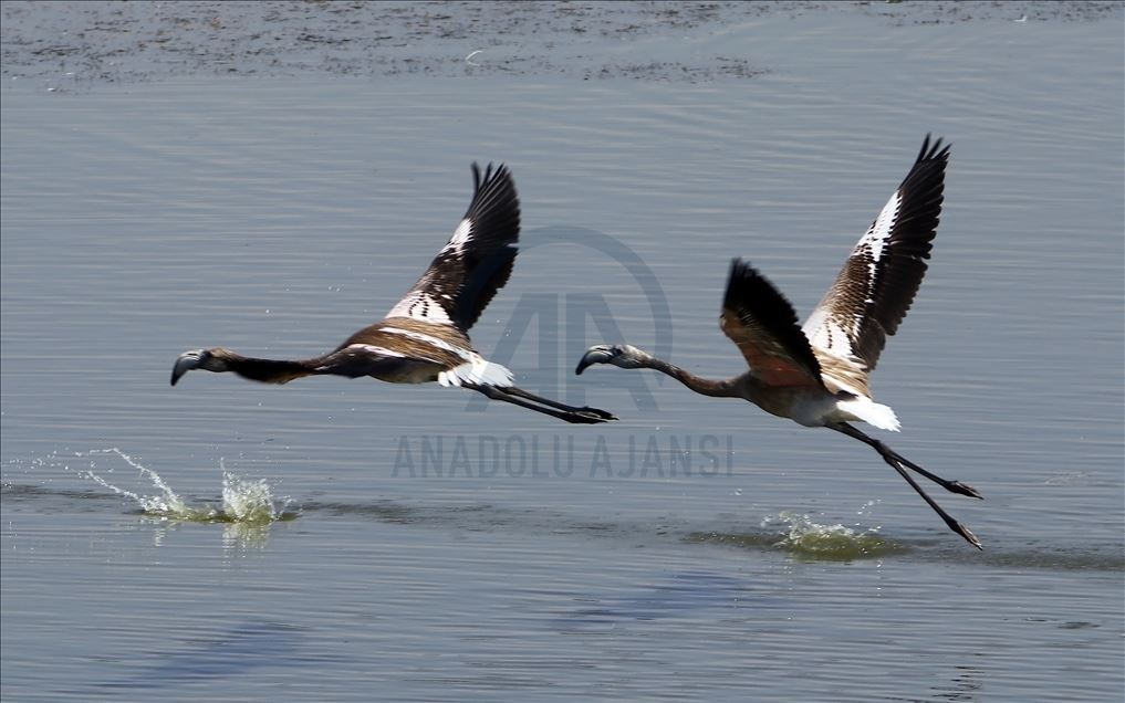 Flamingos are seen on Lake Van basin, In turkey's southeastern province