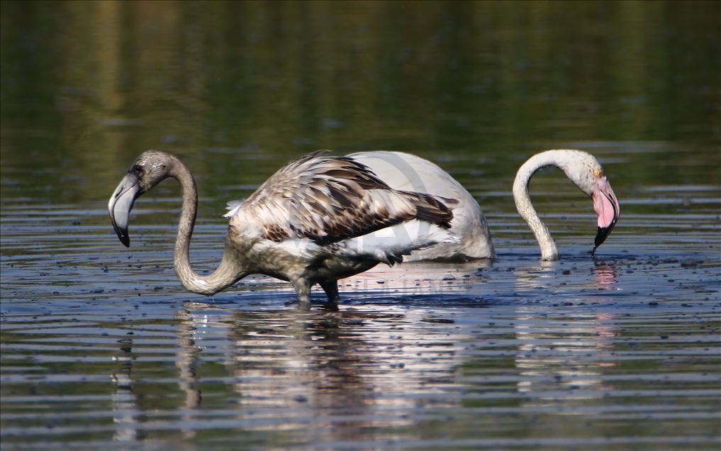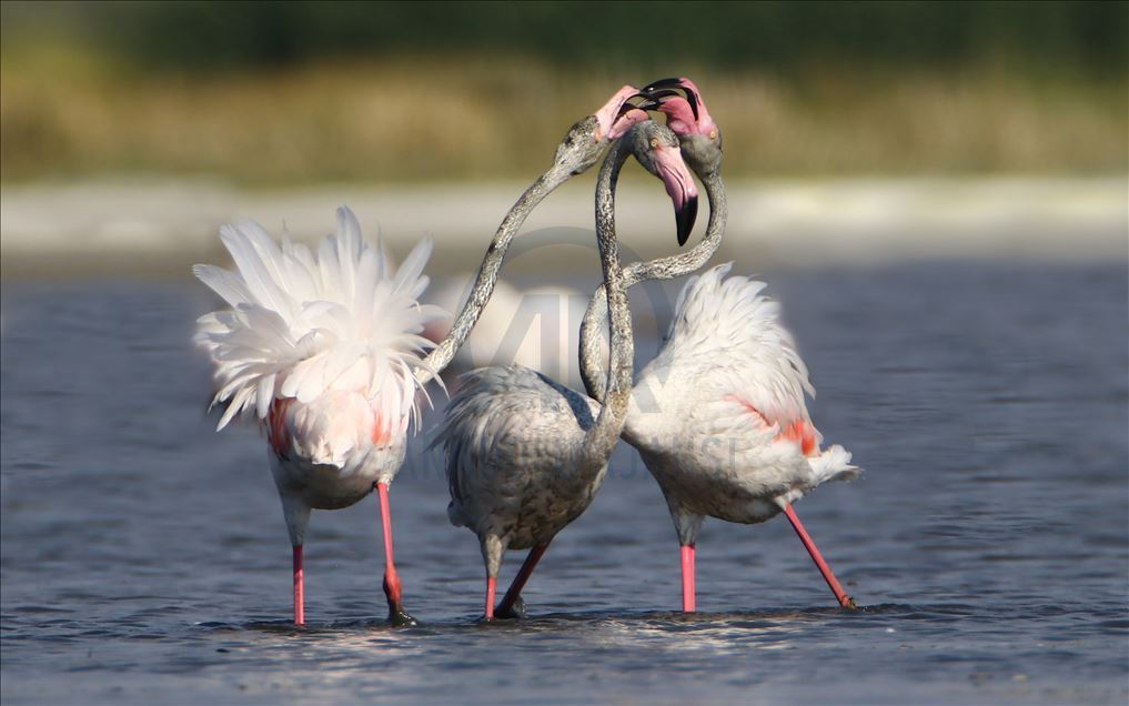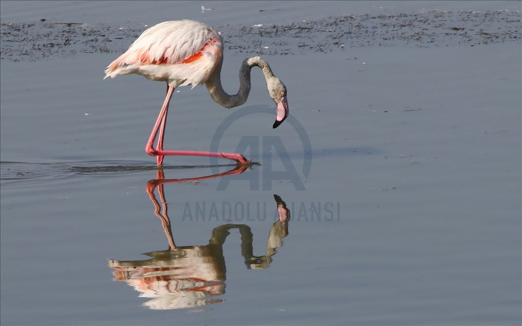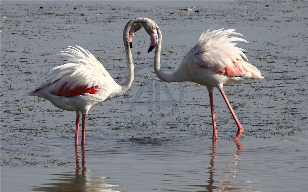 Flamingos at Ercis beaches of Lake Van