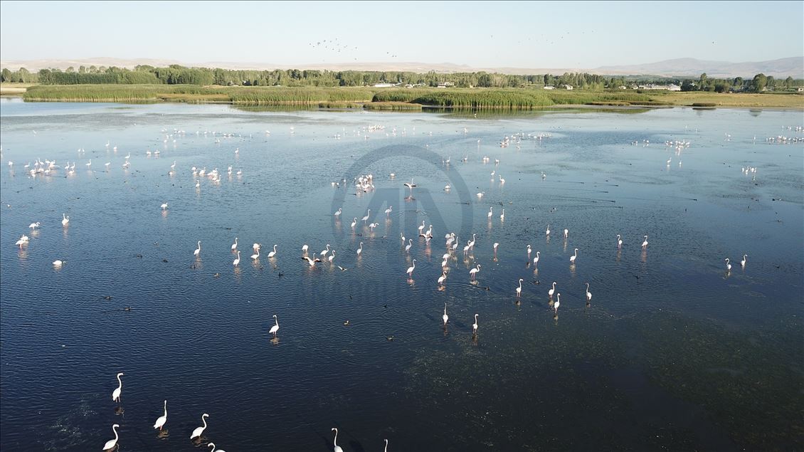 VAN, TURKEY - AUGUST 04: Flamingos are seen on Lake Van at Lake Van Basin on August 04, 2020 in Van province, Turkey. Lake Van, one of the most important temporary accommodation centers for migratory birds on the journey to Africa and draw attention of nature lovers and shutterbugs. ( Necmettin Karaca - Anadolu Agency )Necmettin Karaca