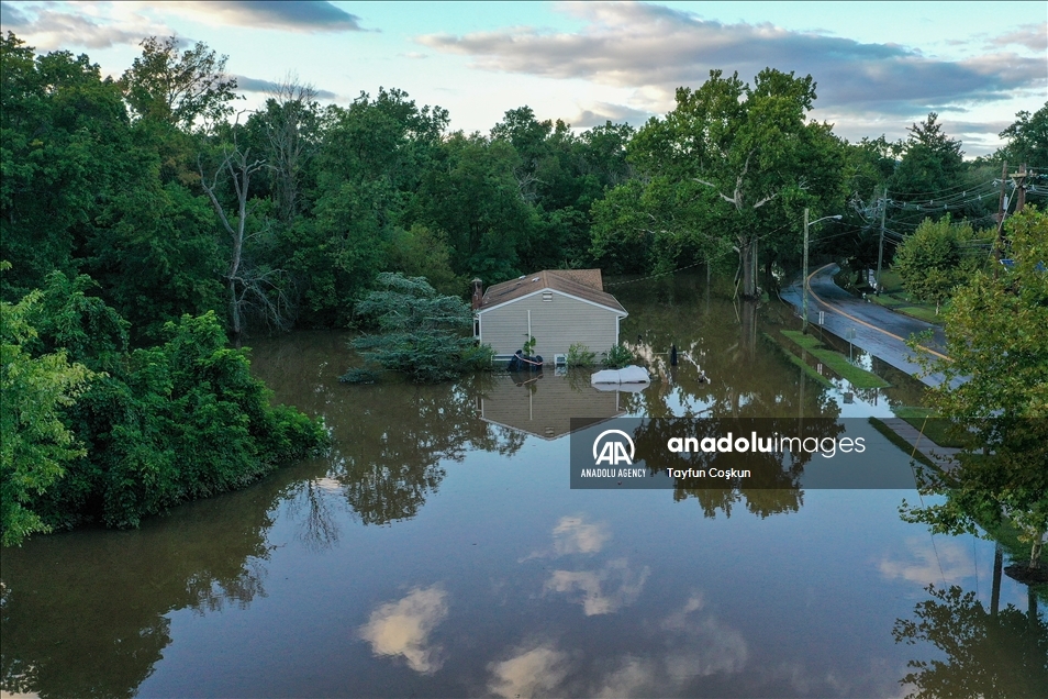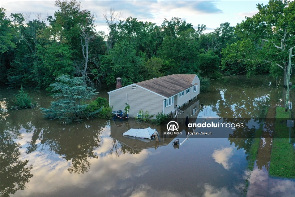 NEW JERSEY, USA - SEPTEMBER 2: An aerial view of a house surrounded by floodwater in Middlesex after Hurricane Ida left behind flash floods east coast, in New Jersey, United States on September 2, 2021. ( Tayfun Coşkun - Anadolu Agency )Tayfun Coşkun