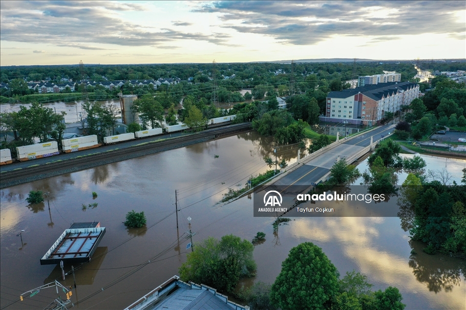 NEW JERSEY, USA - SEPTEMBER 2: An aerial view of flooded streets in the Town of Bound Brook in New Jersey, United States on September 2, 2021. The death toll on the US East Coast from the remnants of Hurricane Ida rose to 45 Thursday after the region was hit by record rains and dangerous floods. ( Tayfun Coşkun - Anadolu Agency )Tayfun Coşkun