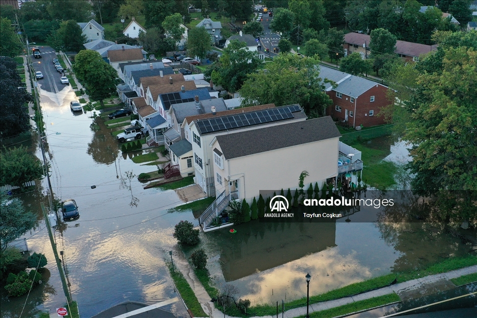 NEW JERSEY, USA - SEPTEMBER 2: An aerial view of a community in Middlesex as floodwater covers streets after Hurricane Ida left behind flash floods east coast, in New Jersey, United States on September 2, 2021. ( Tayfun Coşkun - Anadolu Agency )Tayfun Coşkun