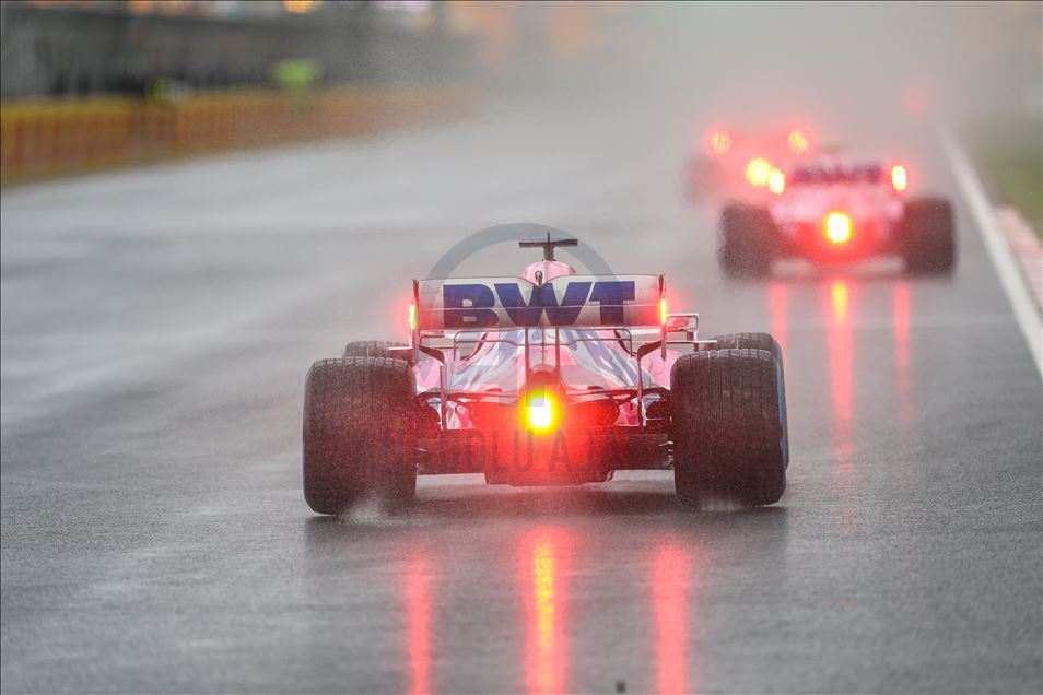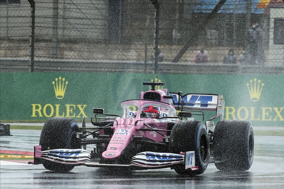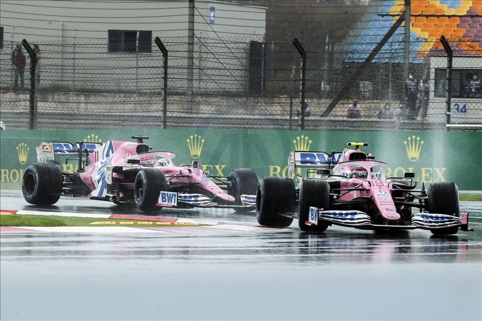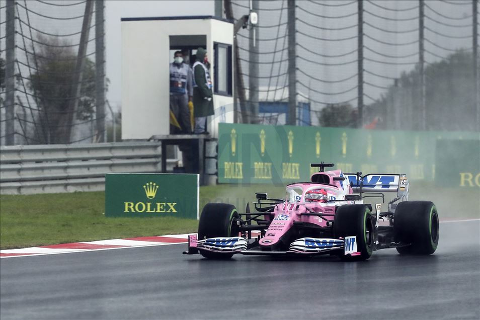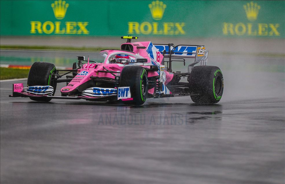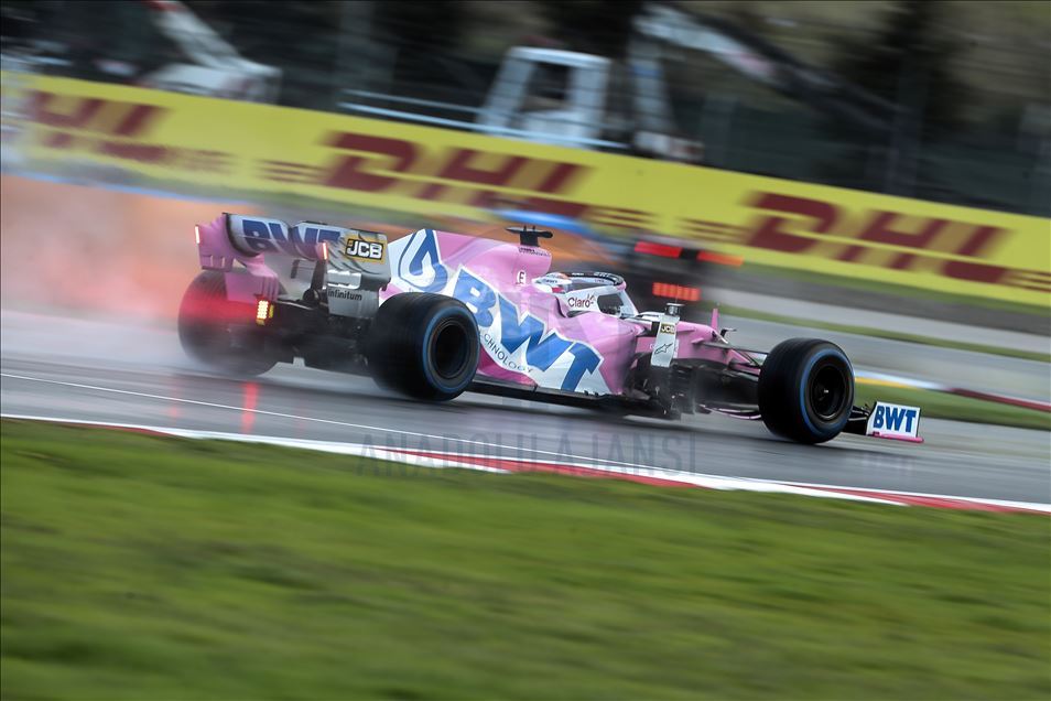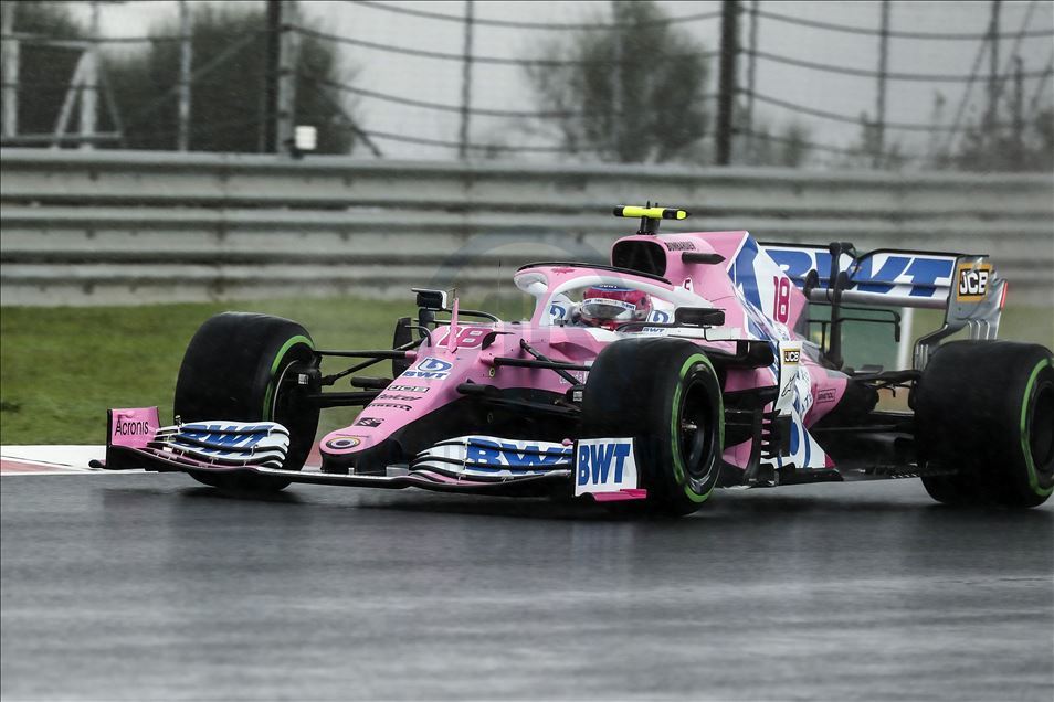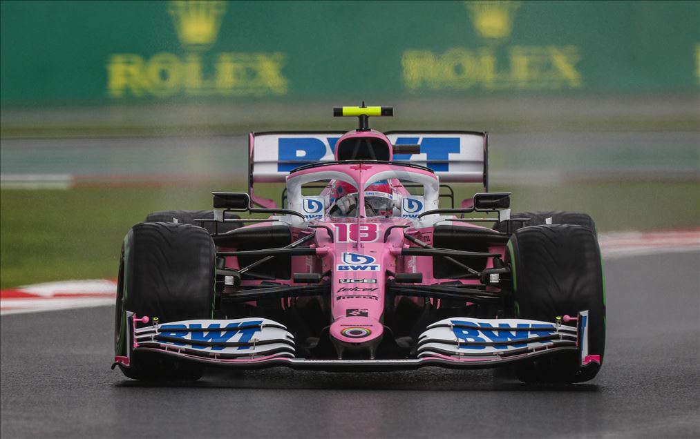 Lance Stroll (18) of Racing Point competes in the qualification lap of 2020 Turkish Grand Prix at Istanbul Park circuit in Istanbul, Turkey on November 14, 2020. Racing Point team's Lance Stroll takes 2020 Turkish Grand Prix pole position.