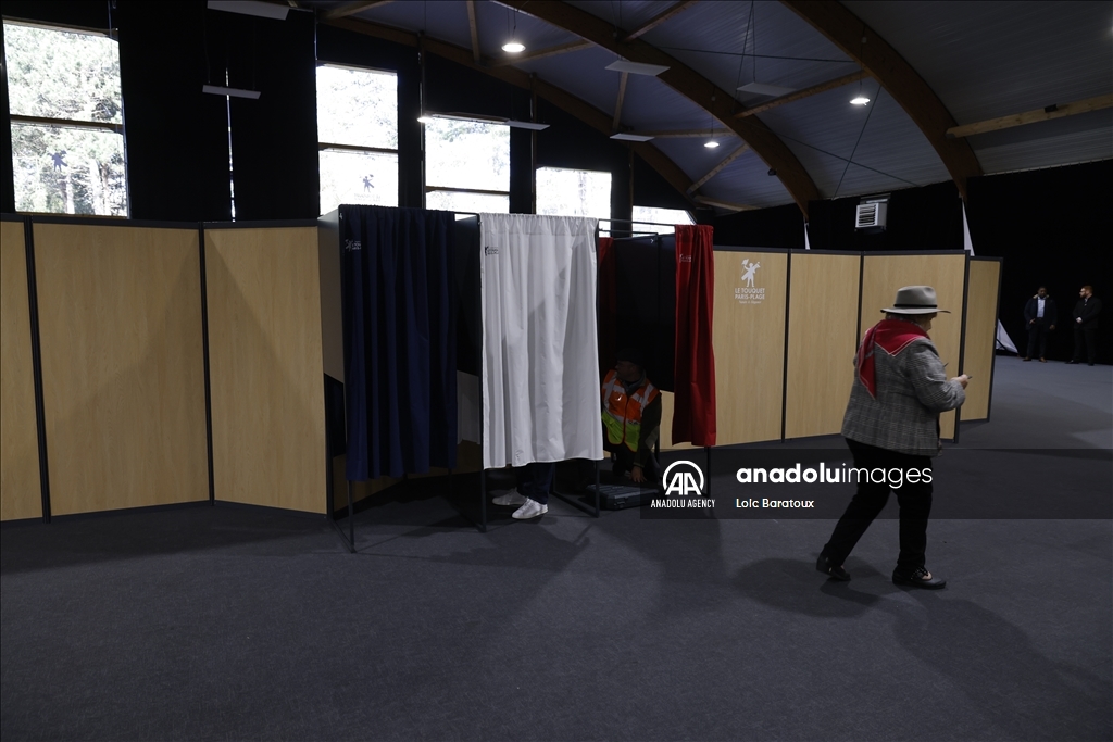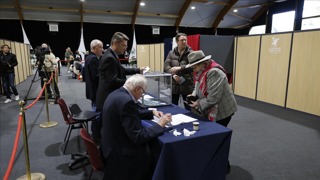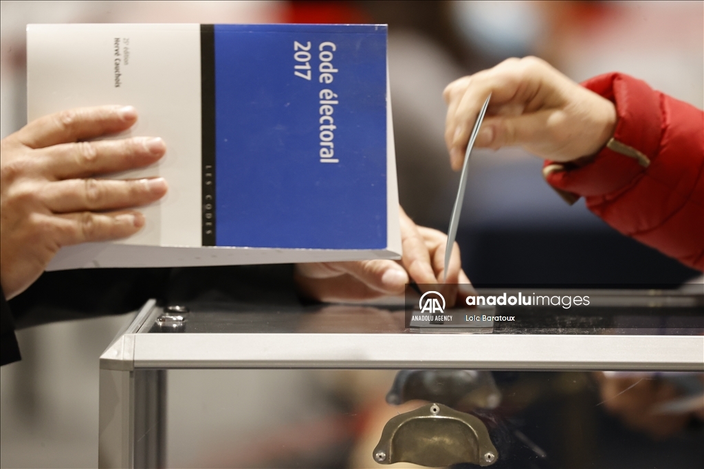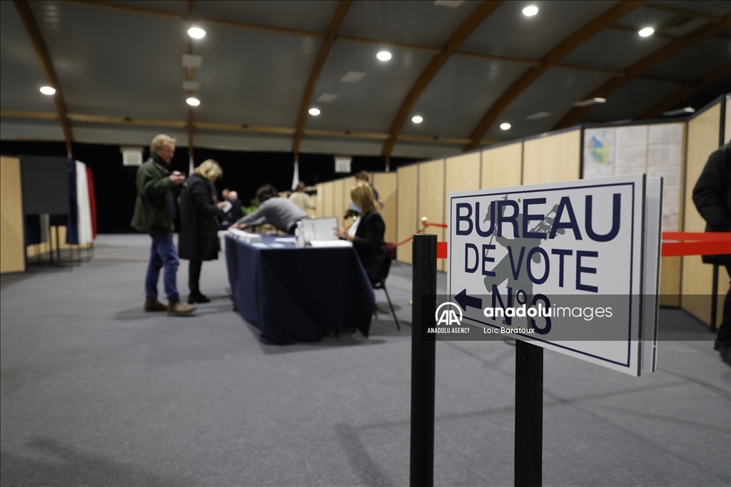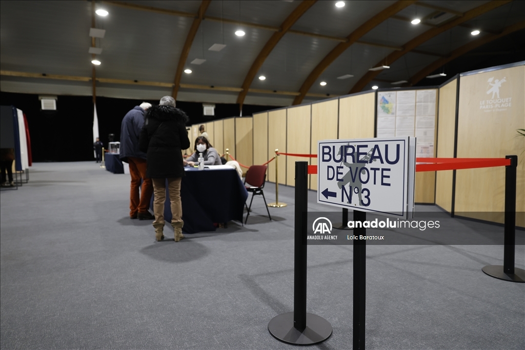 French citizens cast their votes for the first round of 2022 French presidential election in Le Touquet, France on April 10, 2022
