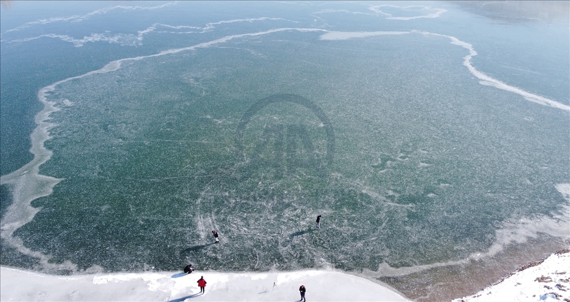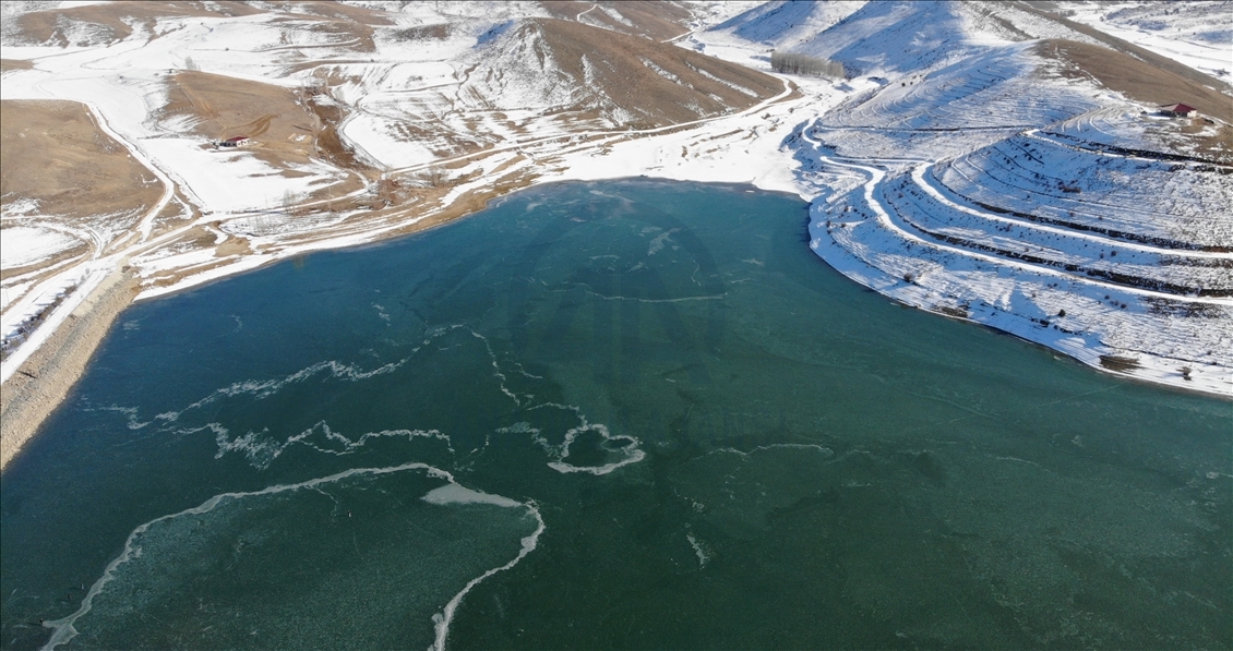 BAYBURT, TURKEY - JANUARY 03: A view of frozen Gokceder Pond after the air temperature dropped below zero during winter season in Bayburt, Turkey on January 03, 2021. ( Beşir Kelleci - Anadolu Agency )Beşir Kelleci