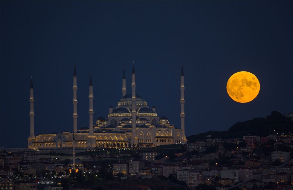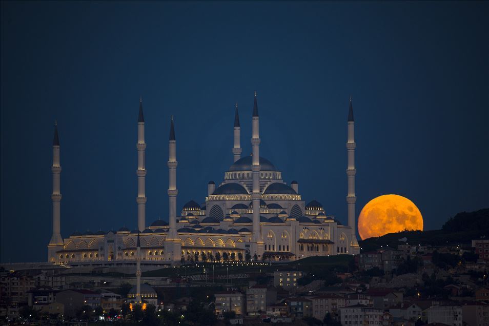 Full moon rises over Camlica Mosque