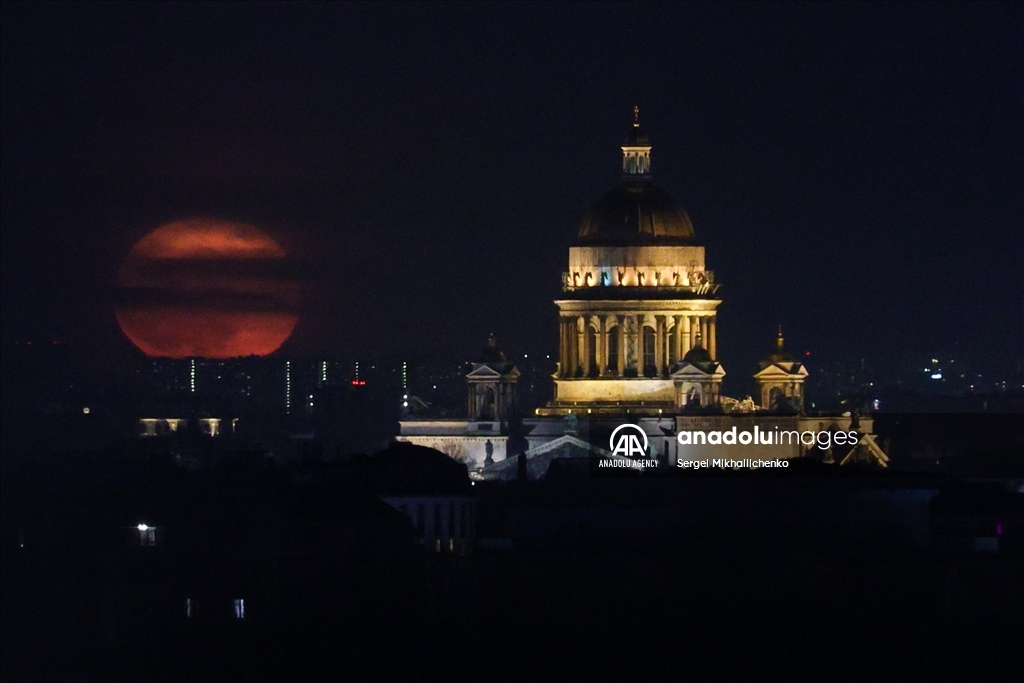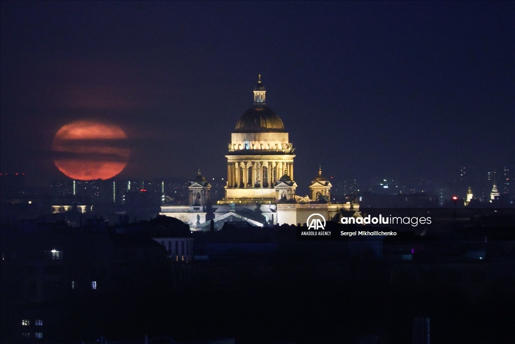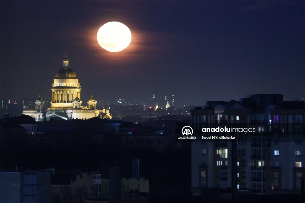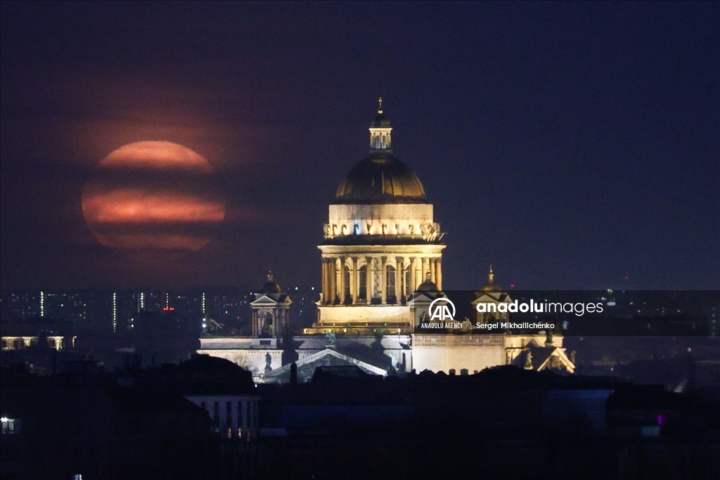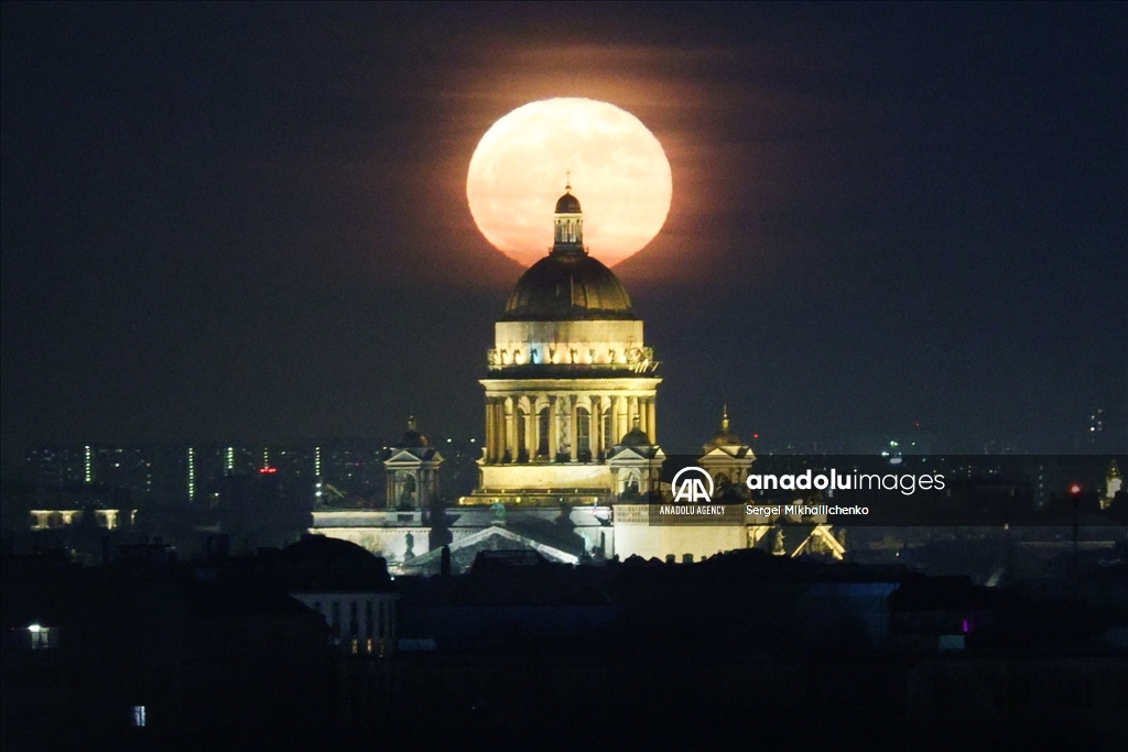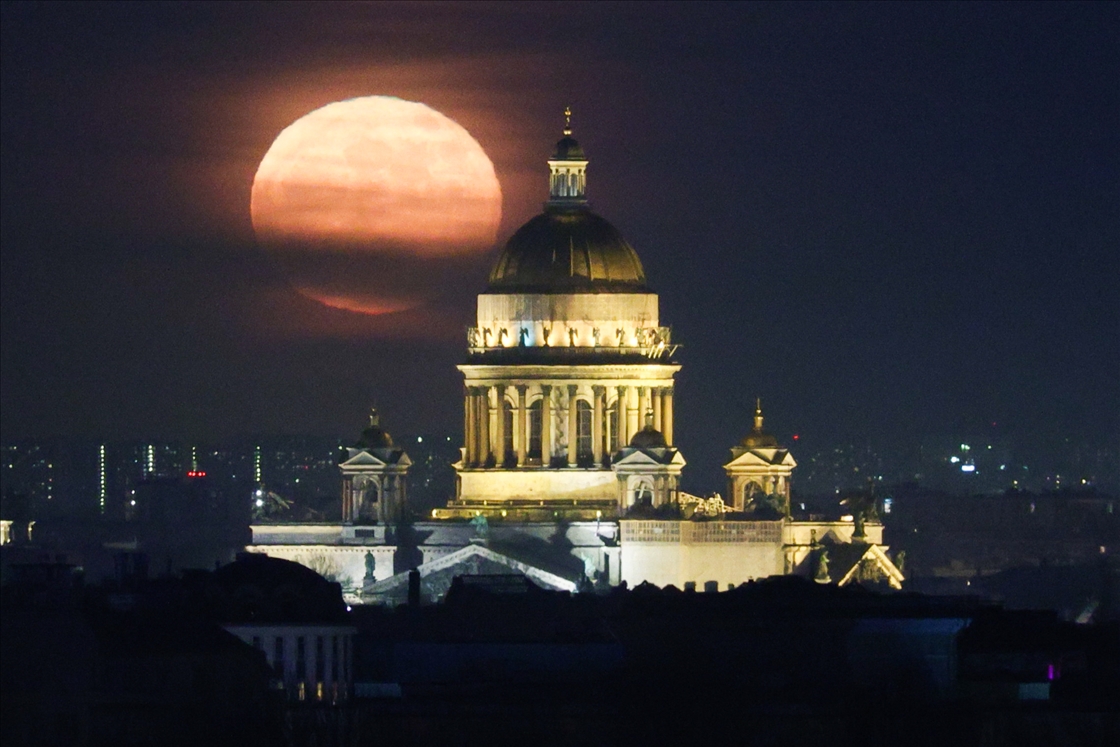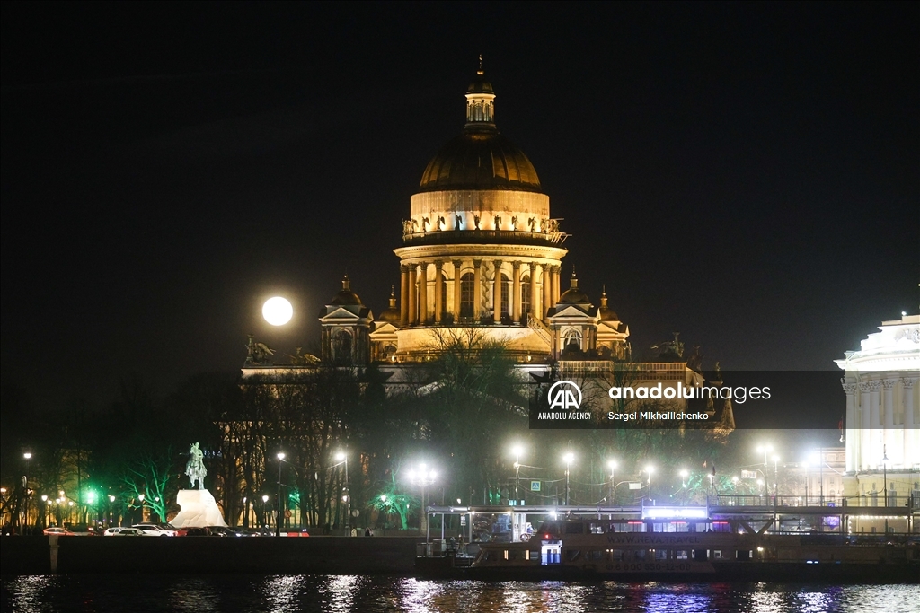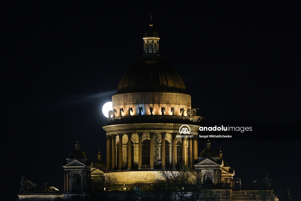 SAINT-PETERSBURG, RUSSIA - APRIL 13: Full moon rises over St Isaac Cathedral in Saint-Petersburg, Russia on April 13, 2025. ( Sergei Mikhailichenko - Anadolu Agency )Sergei Mikhailichenko