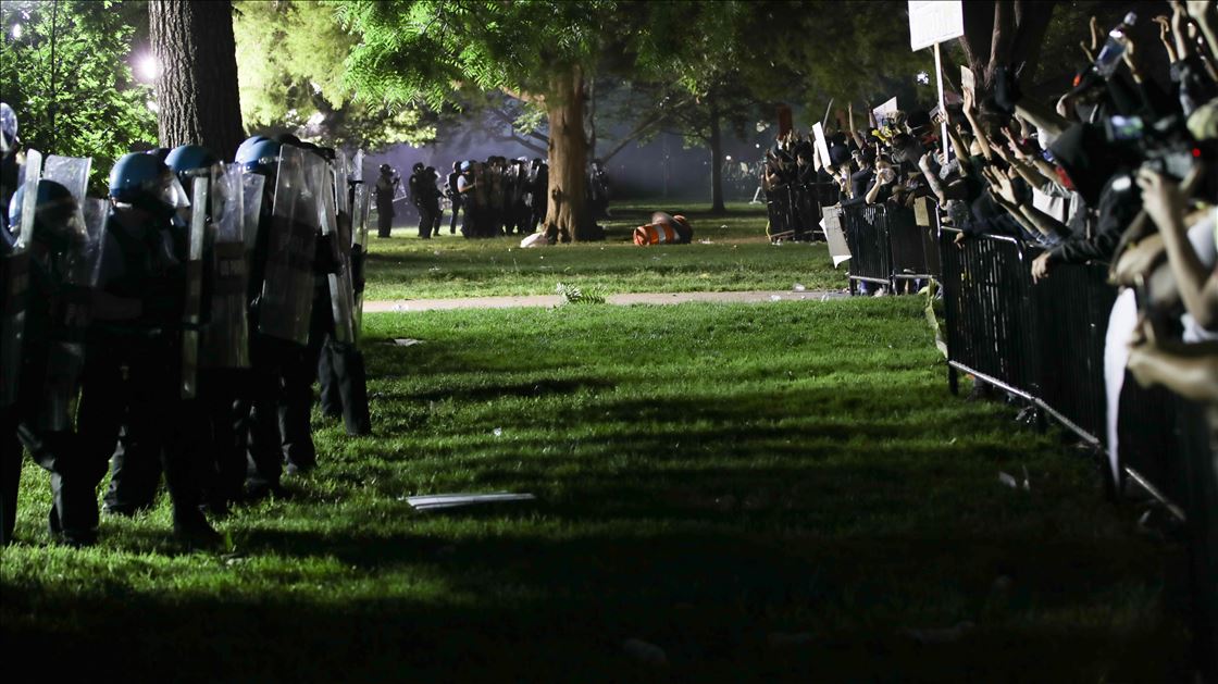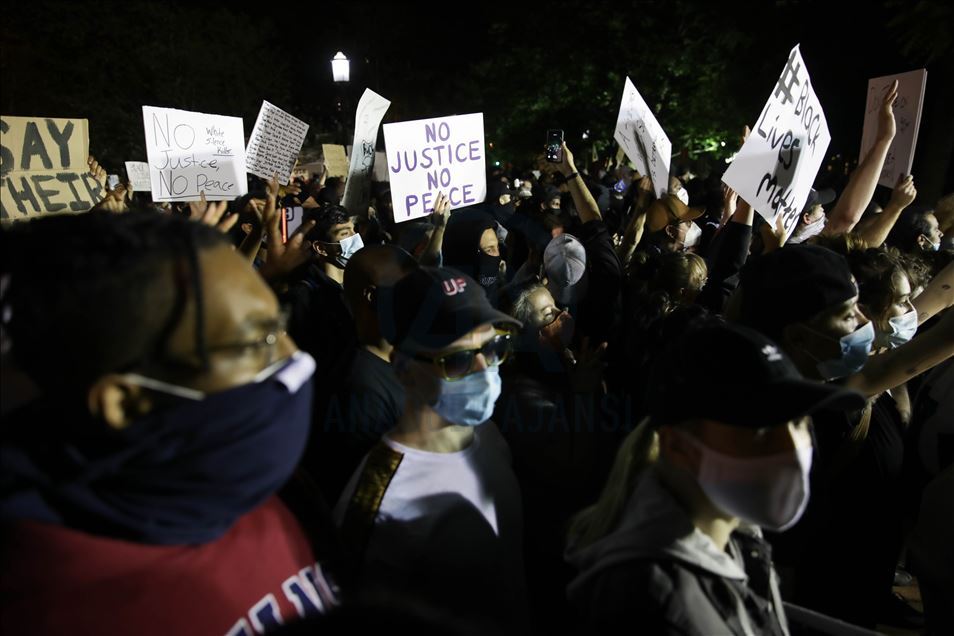 WASHINGTON, USA - JUNE 1: Protesters gather near White House during a protest over the death of George Floyd, an unarmed black man who died after being pinned down by a white police officer in Washington, United States on June 1, 2020.