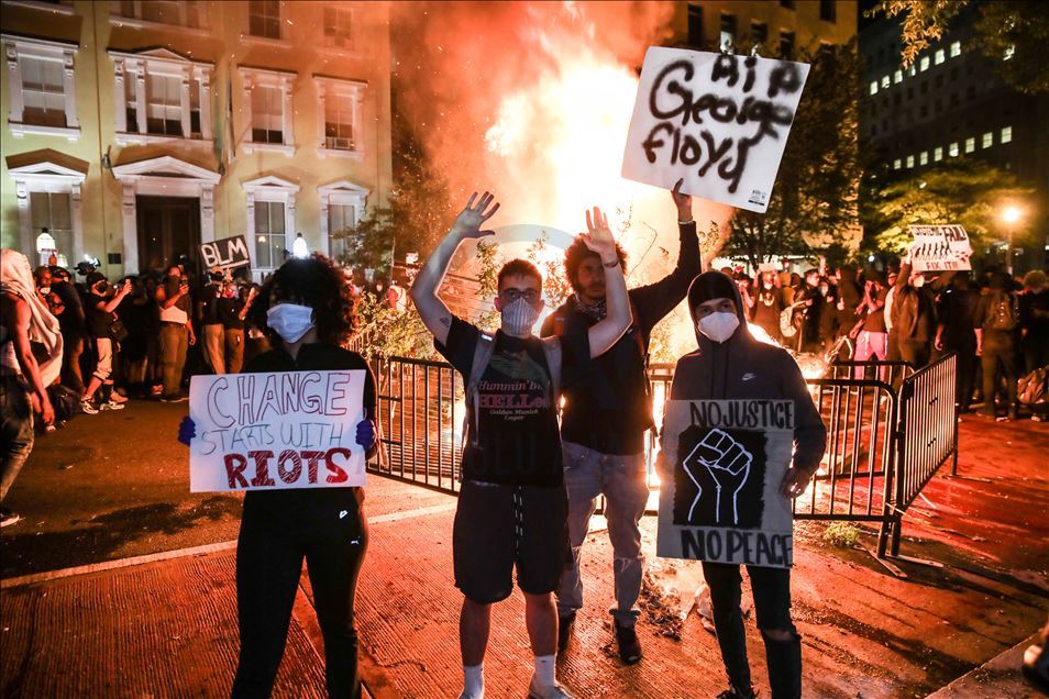 WASHINGTON, USA - JUNE 1: Protesters burn materials during a protest over the death of George Floyd, an unarmed black man who died after being pinned down by a white police officer in Washington, United States on June 1, 2020.