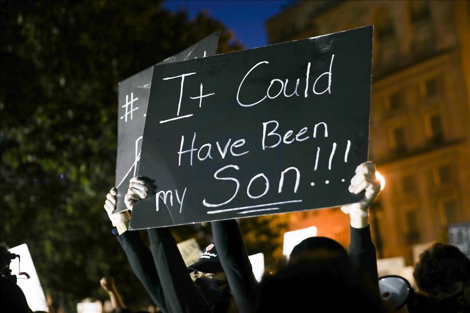 WASHINGTON, USA - JUNE 1: Protesters hold banners near White House during a protest over the death of George Floyd, an unarmed black man who died after being pinned down by a white police officer in Washington, United States on June 1, 2020.