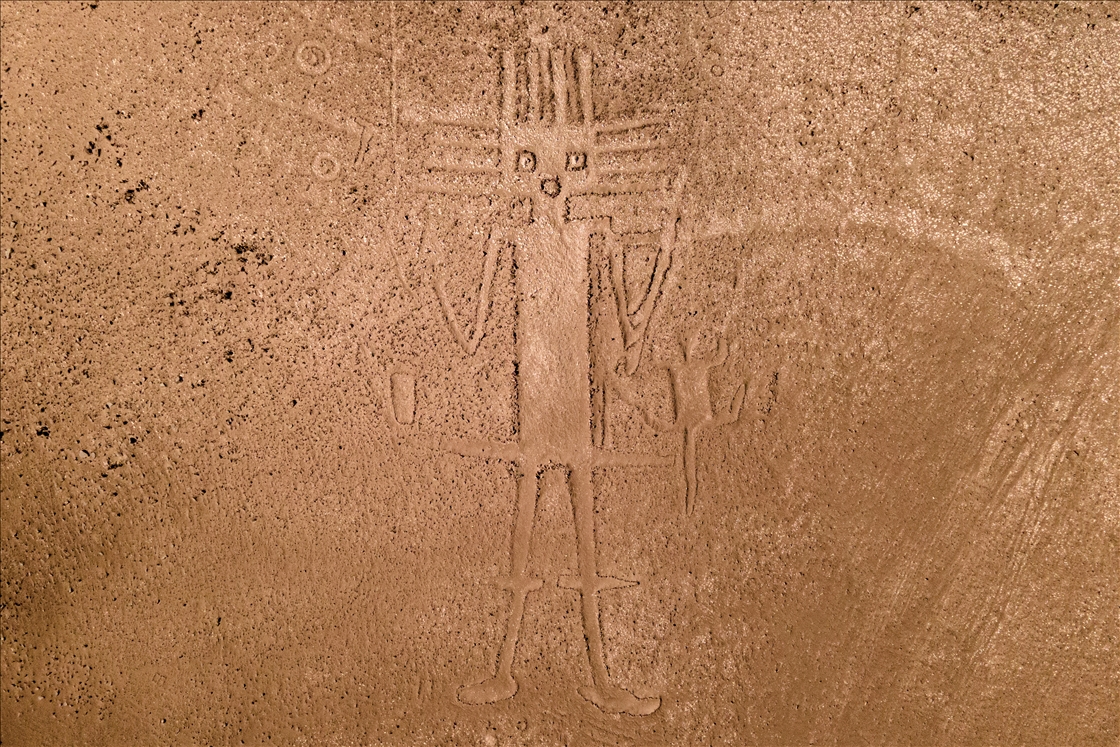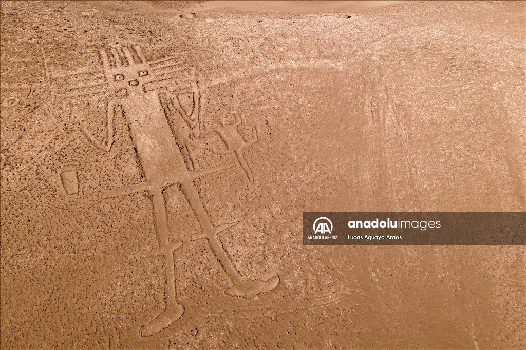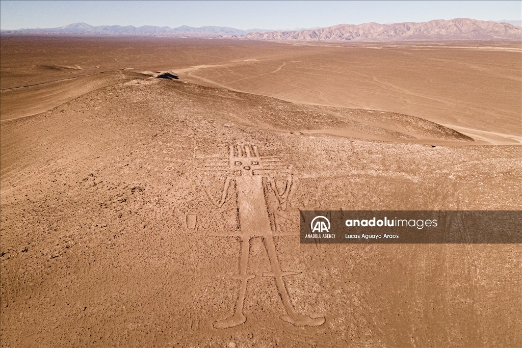 HUARA, CHILE - JUNE 16: An aerial view of the "Giant of Atacama" or "Giant of Tarapaca", the geoglyph with the greatest human representation in the world on June 16, 2023 in Huara, Chile. Little is known about the geoglyph, it is believed that the figure of the Atacama Giant would have been made by inhabitants of the area between the years 900 and 1450 after Christ (AC). It is supposed to be the representation of a 'shaman' or 'yatiri', that is, a man who makes predictions, invokes the spirits and performs healing practices in some religions. ( Lucas Aguayo Araos - Anadolu Agency )Lucas Aguayo Araos