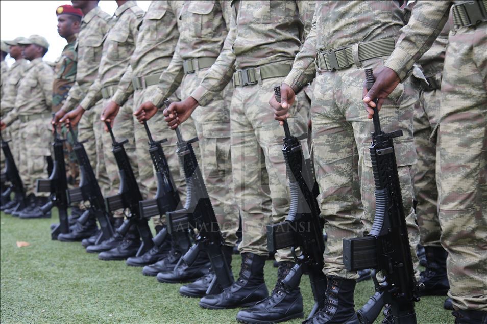 MOGADISHU, SOMALIA - JULY 24: Newly graduated Somalian soldiers are seen during their the graduation ceremony after receiving training period from Turkish military training academy, Somali Turkish Task Force Command, in Mogadishu, Somalia on July 24, 2019. ( Sadak Mohamed - Anadolu Agency )