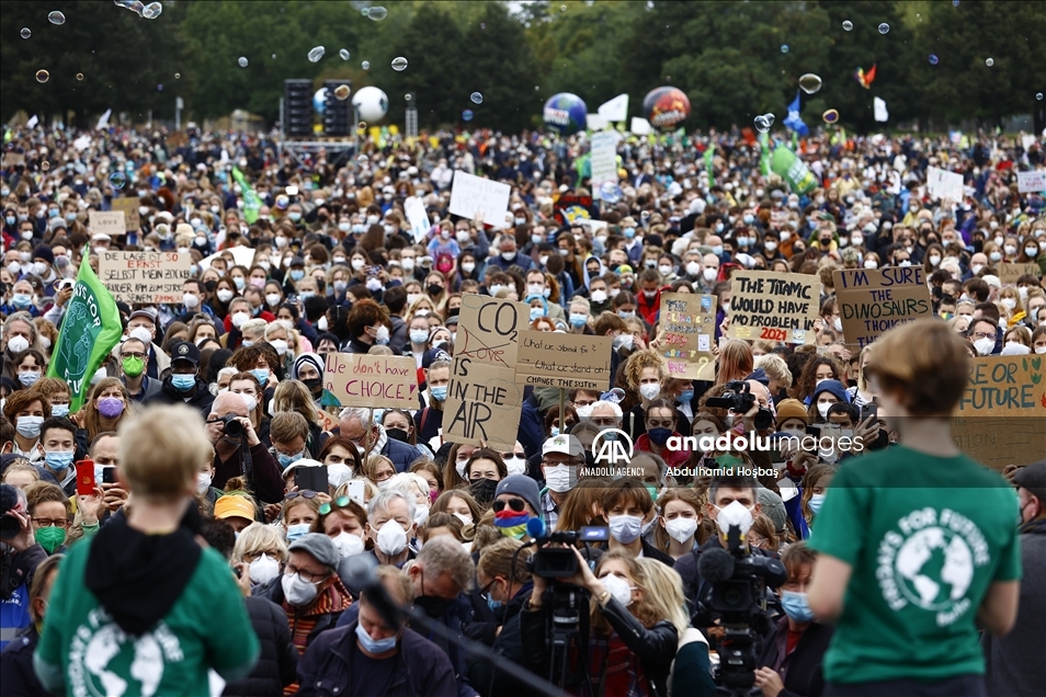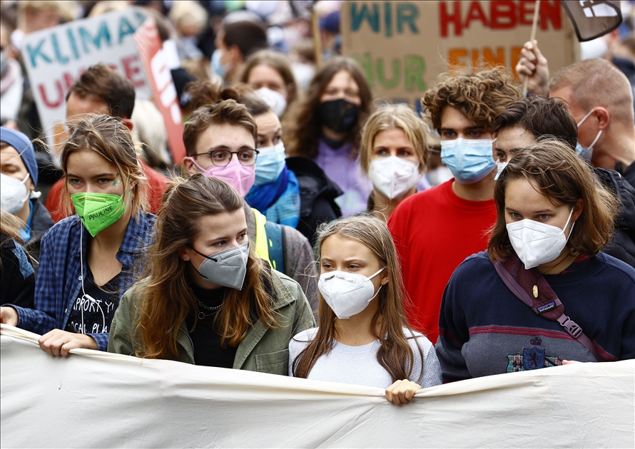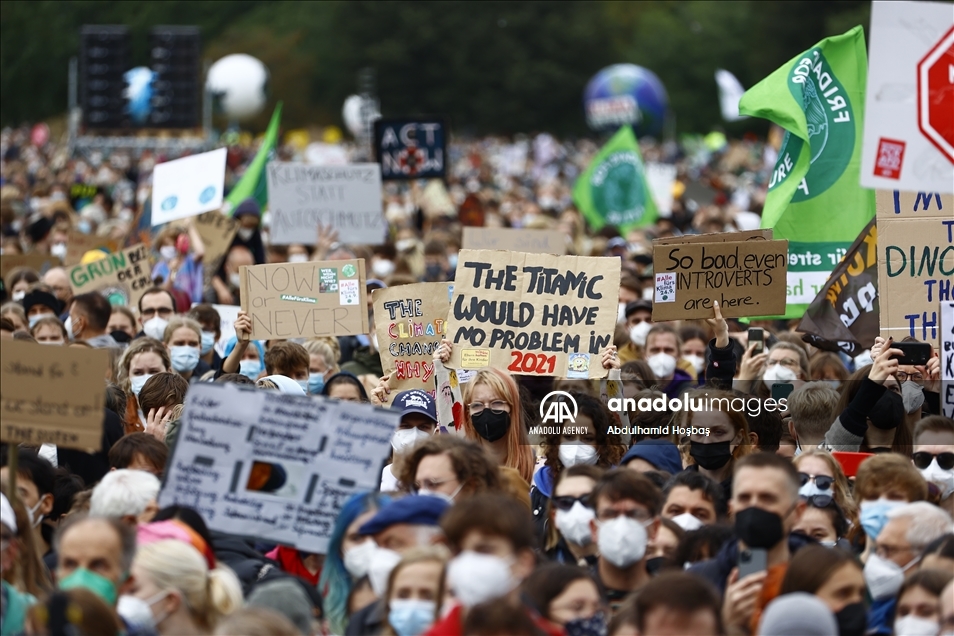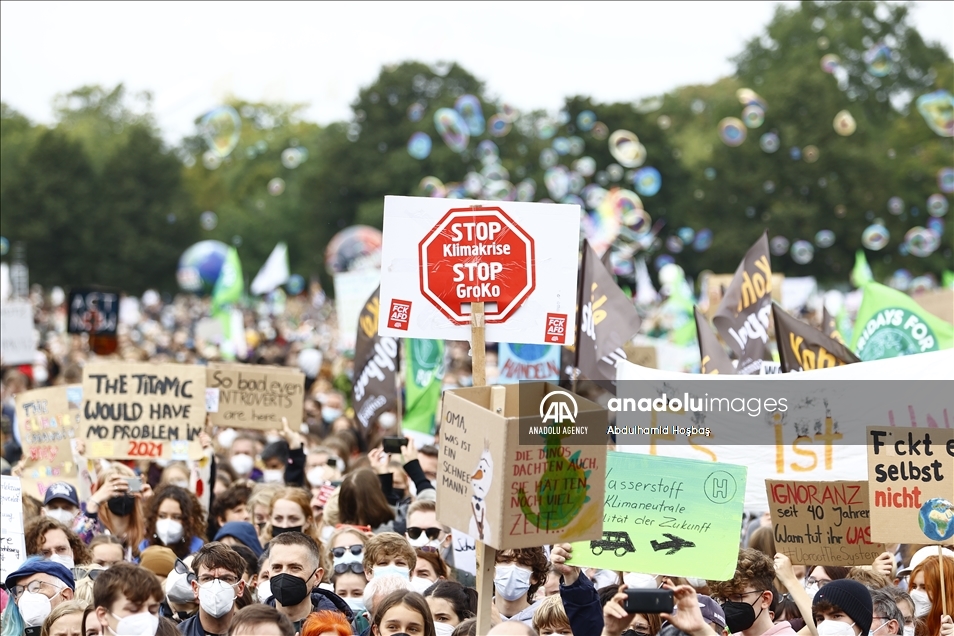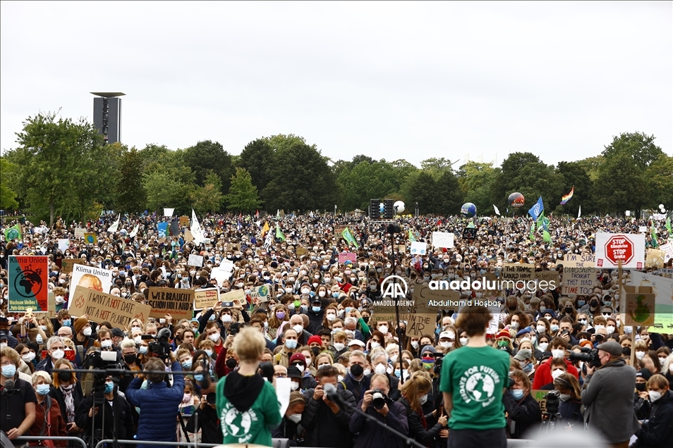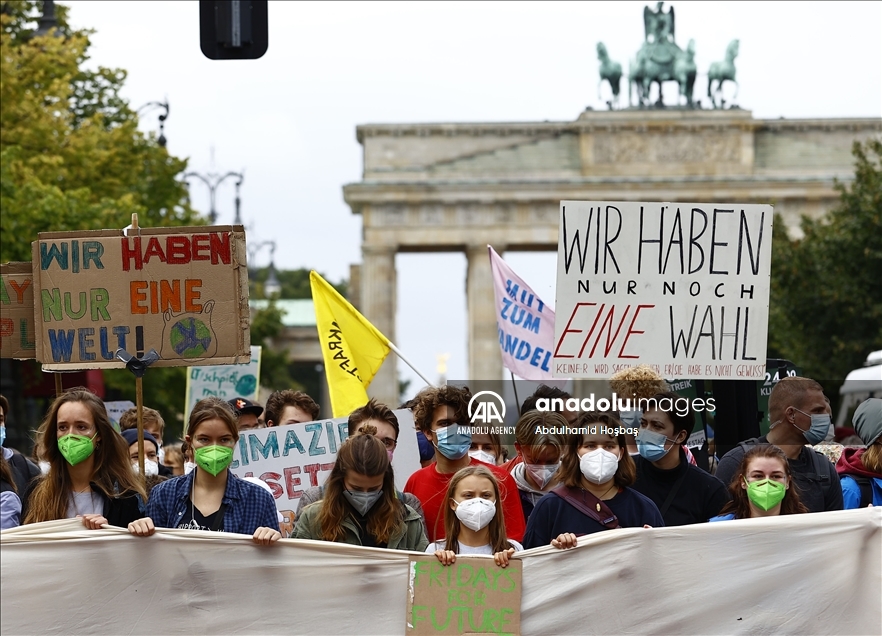 BERLIN, GERMANY - SEPTEMBER 24: Activists of the "Fridays for Future" stage a protest against governments' climate policies in Berlin, Germany on September 24, 2021. ( Abdulhamid Hoşbaş - Anadolu Agency )Abdulhamid Hoşbaş