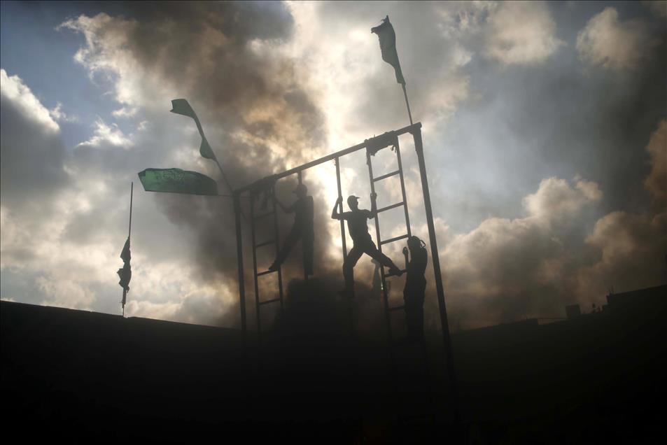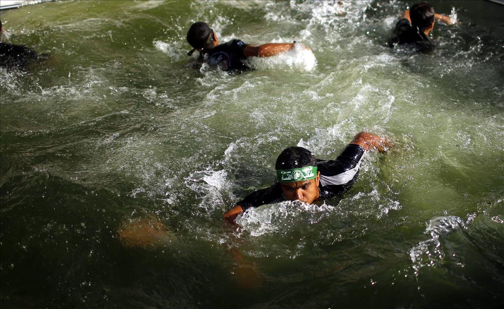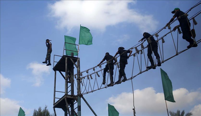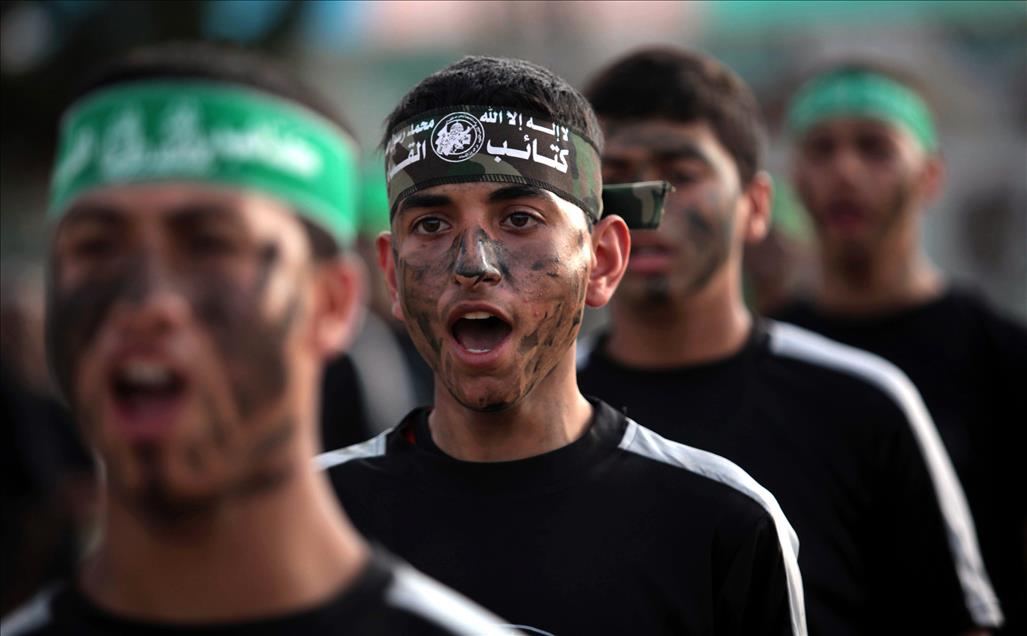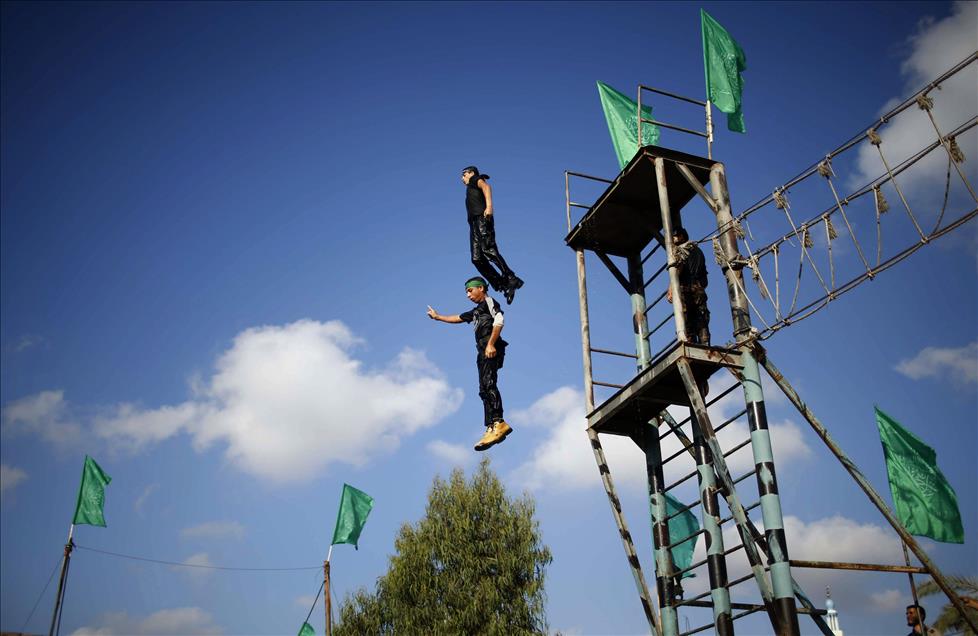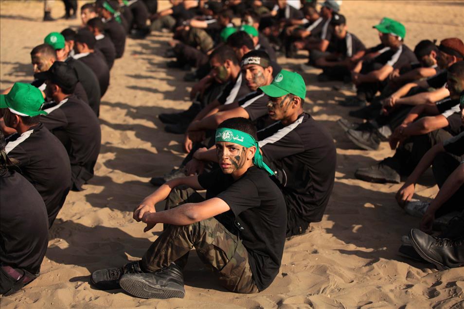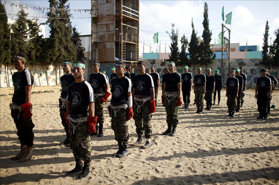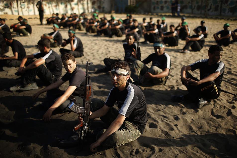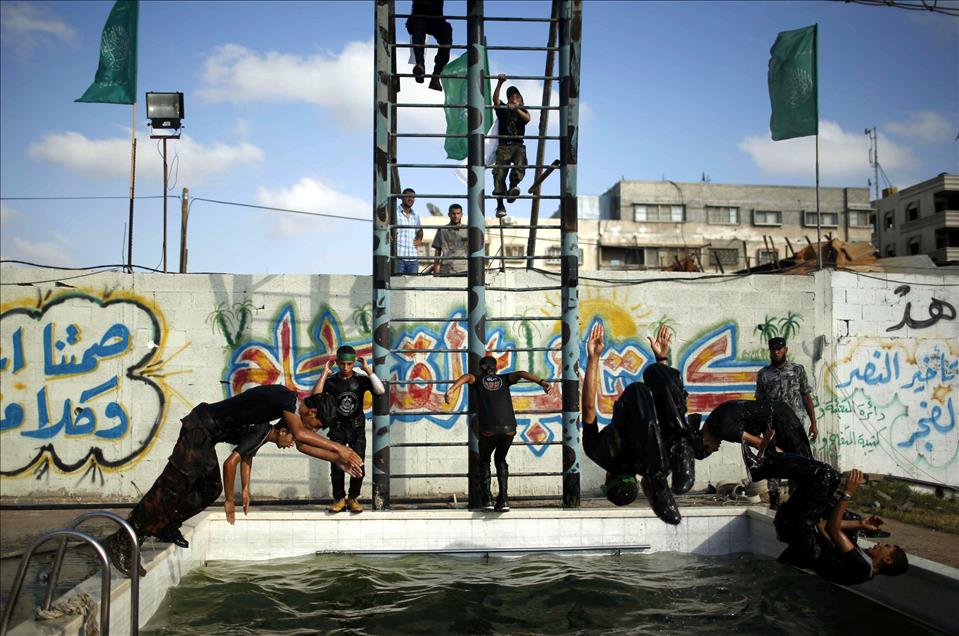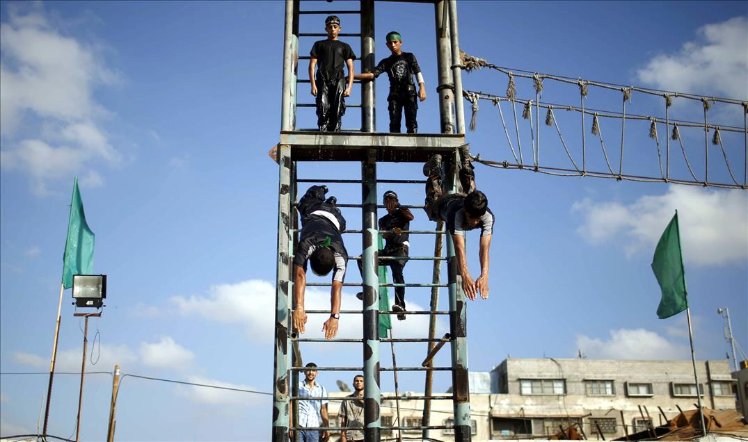 GAZA CITY, GAZA - JUNE 12: Palestinian youths take part in a military-style exercise at a summer camp organized by Hamas in Rafah, southern Gaza Strip on June 12, 2014. Ashraf Amra / Anadolu AgencyAshraf Amra