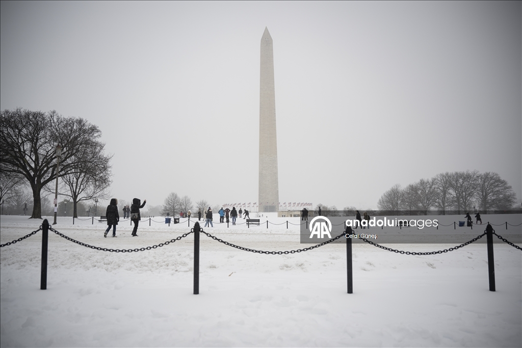 WASHINGTON DC, UNITED STATES - JANUARY 25: A view of Washington Monument during heavy snowfall that began late last night blanketed the US capital, Washington DC on January 25, 2026. ( Celal Güneş - Anadolu Agency )Celal Güneş