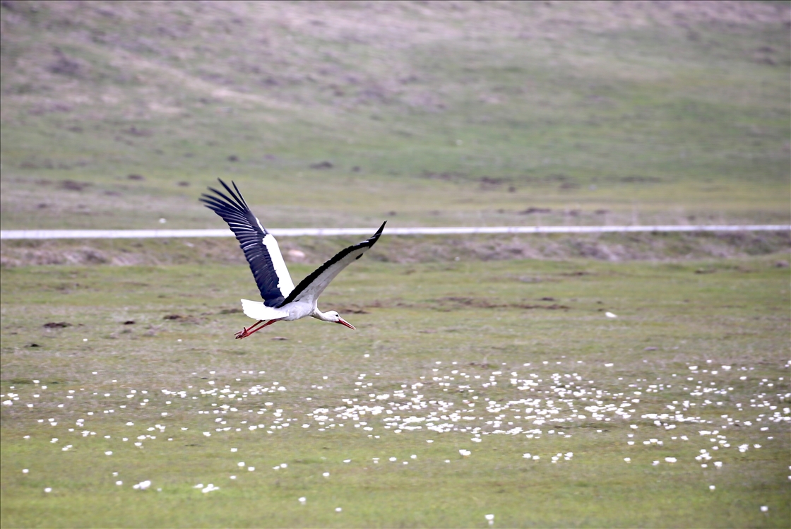 MUS, TURKIYE - MARCH 6: A white stork is seen on the Mus plain in Mus, Turkiye on March 6, 2026. Storks migrate to warm regions in the fall and return to the nests they built years ago when the weather warms. ( İbrahim Yaldız - Anadolu Agency )İbrahim Yaldız