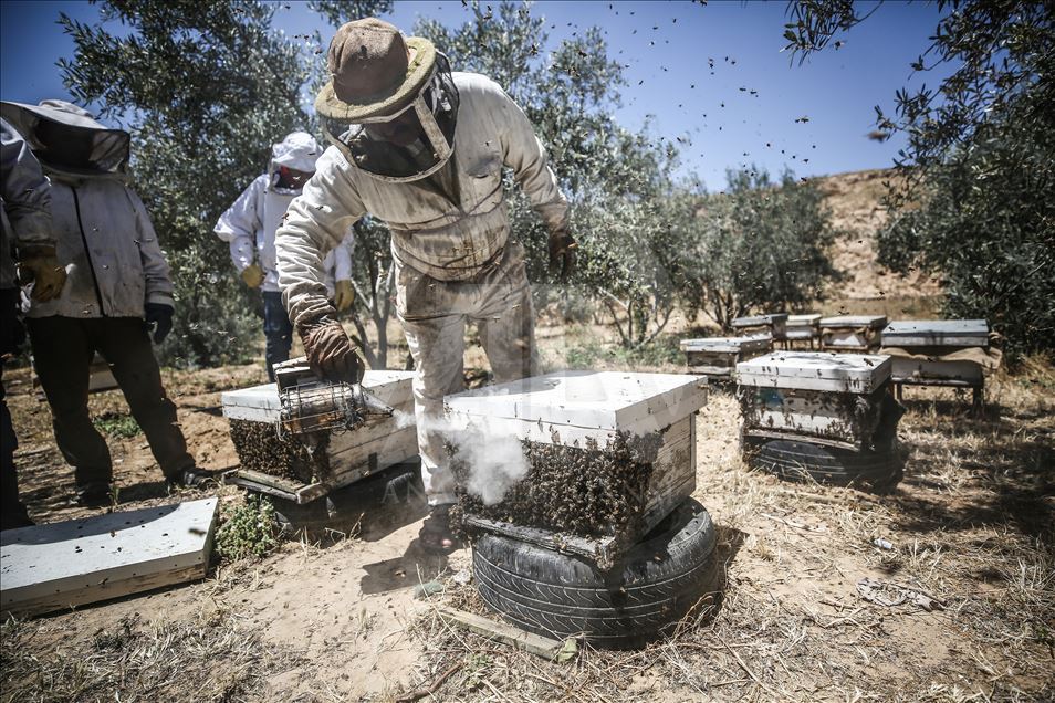 Honey harvest in Gaza