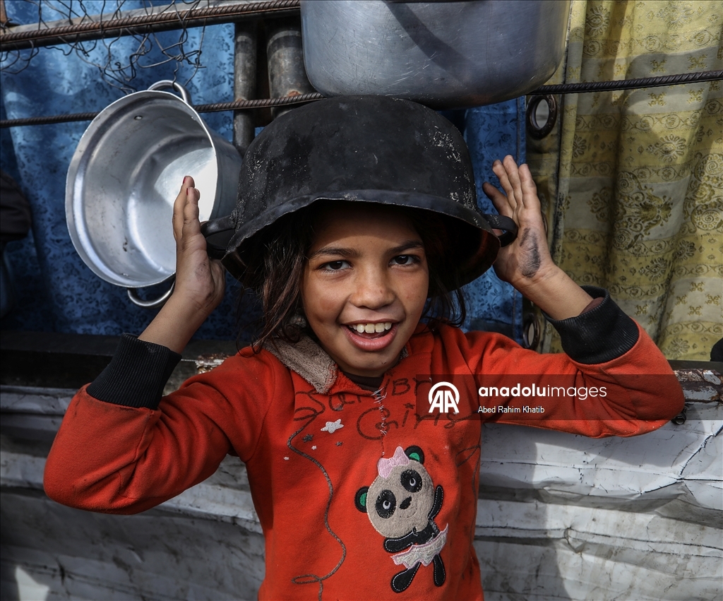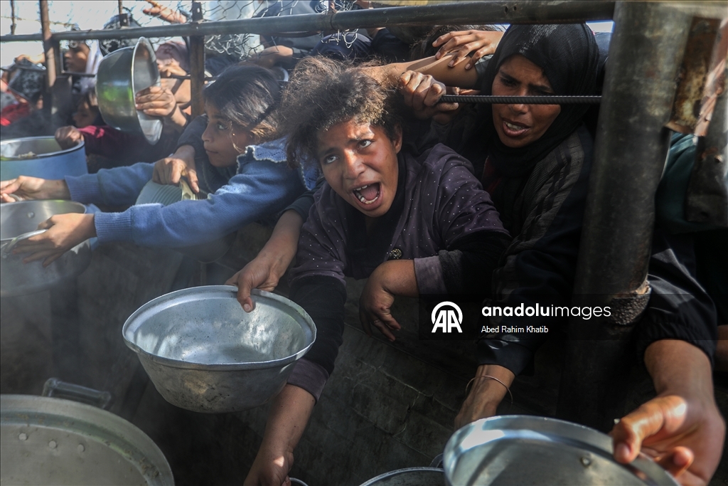 İsrail'in Gazze Şeridi'ne sınırlı sayıda insani yardım girişine vermesi nedeniyle kentteki gıda krizi devam ediyor. Han Yunus'un el-Mevasi bölgesindeki bir hayır kurumu, yerinden edilen Filistinlilere yemek dağıttı. Yemekten almak isteyen ve aralarında çocukların da bulunduğu çok sayıda Filistinli kuyrukta bekledi. ( Abed Rahim Khatib - Anadolu Agency )Abed Rahim Khatib
