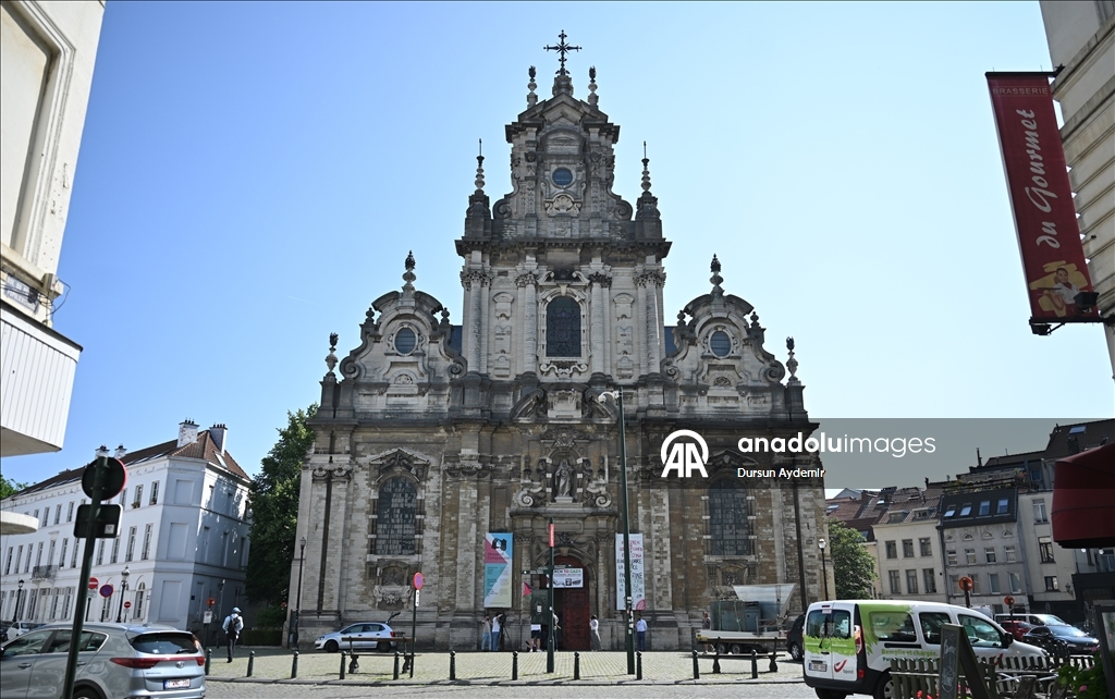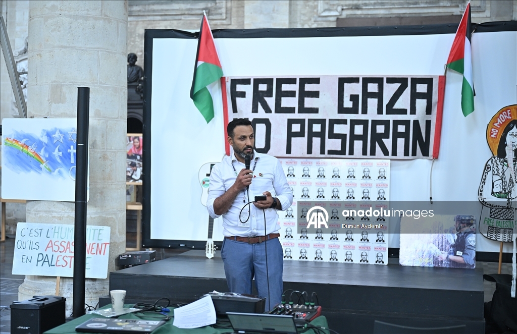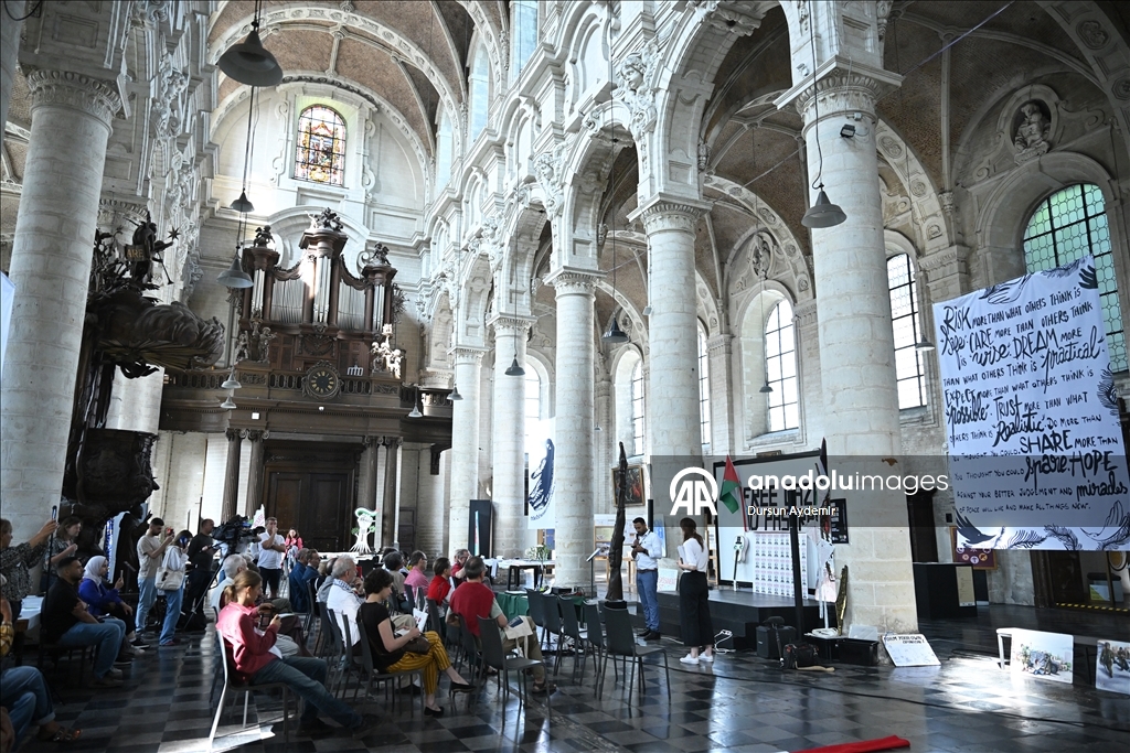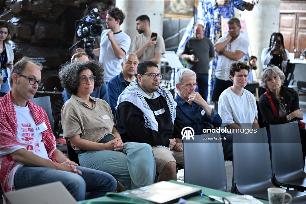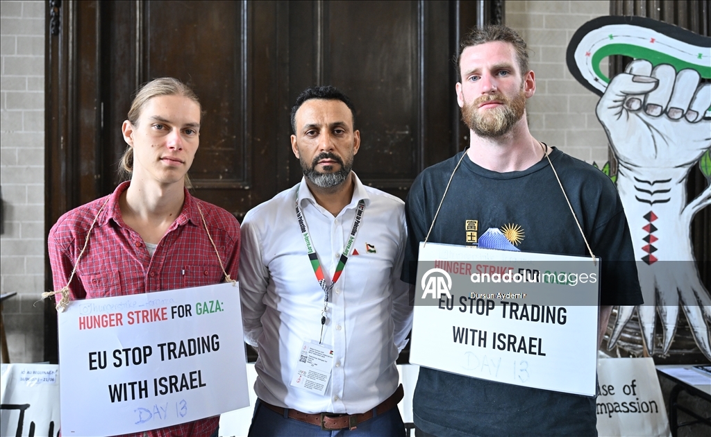BRUSSELS, BELGIUM - JUNE 16: A group including Priest Daniel Alliet stages a hunger strike for justice in Palestine at the Beguinage Church in central Brussels, Belgium, on June 16, 2025. The protest takes place in the heart of the city that hosts European Union institutions, drawing attention to the ongoing humanitarian situation in Gaza.