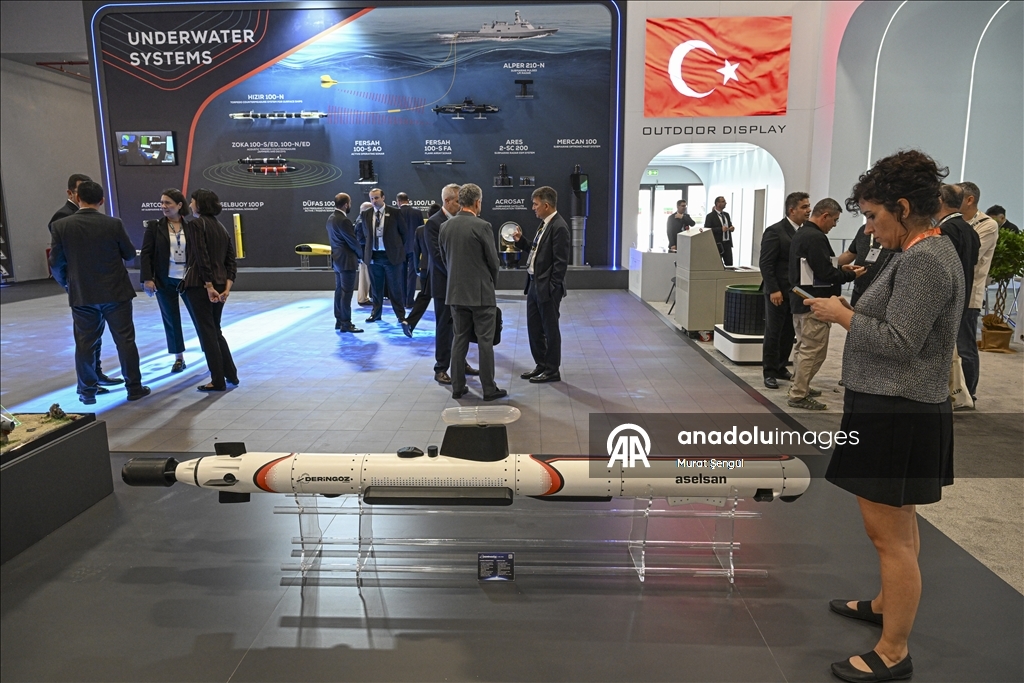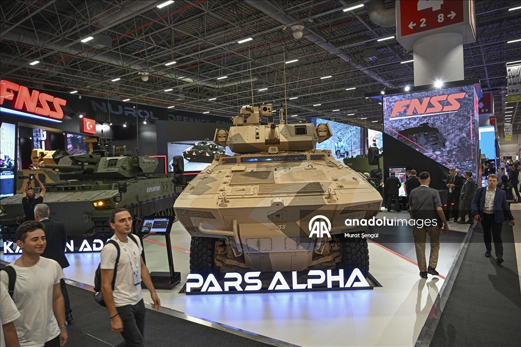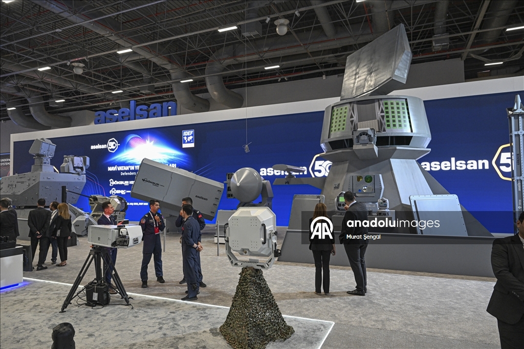ISTANBUL, TURKIYE - JULY 22: People visit the stands during IDEF 2025 (, where more than 400 international companies from 44 countries exhibit their products, at the Istanbul Expo Center in Istanbul, Turkiye on July 22, 2025. 17th International Defence Industry Fair IDEF 2025 is hosted by Turkish Ministry of National Defence, supported by the Presidency of the Turkiye Secretariat of Defence Industries, under the management and responsibility of Turkish Armed Forces Foundation and organized by KFA Fairs Organization Inc. between 22-27 July 2025 at the Istanbul Expo Center. ( Murat Şengül - Anadolu Agency )Murat Şengül