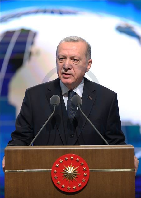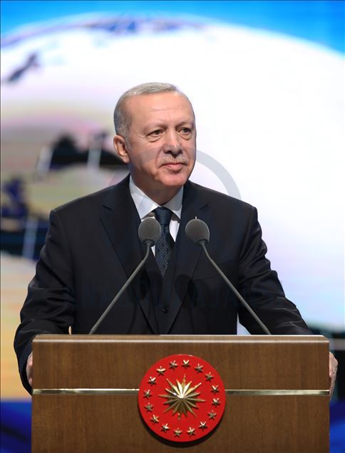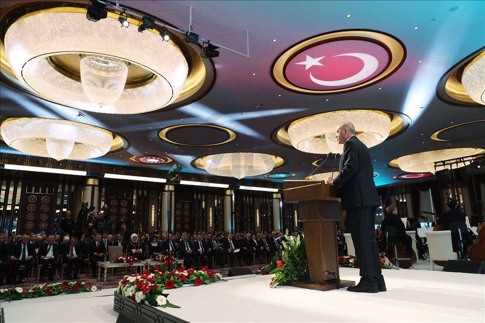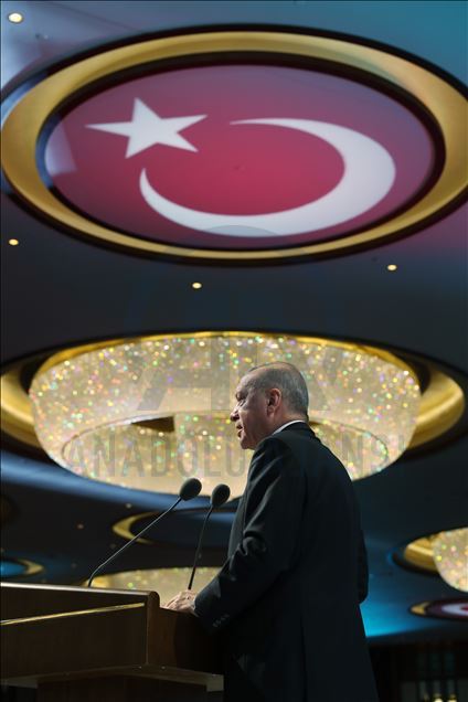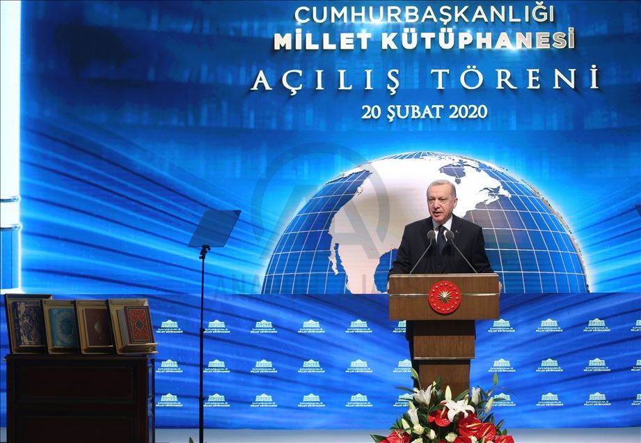 President of Turkey, Recep Tayyip Erdogan delivers a speech during the inauguration ceremony of landmark Presidential Library in the presidential complex in Ankara, Turkey on February 20, 2020.