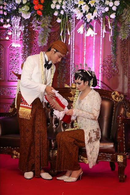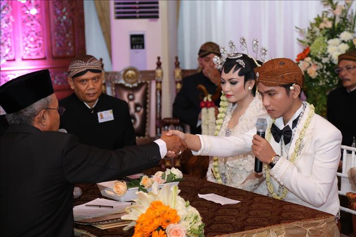 SOLO, INDONESIA - JUNE 11: Indonesian President Joko Widodo's son Gibran Rakabuming Raka and his bride Selvi Ananda are seen during their wedding in Solo, Central Java, Indonesia, 11 June 2015. President Joko Widodo's eldest son, Gibran Rakabuming Raka married former winner of a Solo beauty pageant contest Selvi Ananda on 11 June. (Khairul Basyar - Anadolu Agency)Khairul Basyar