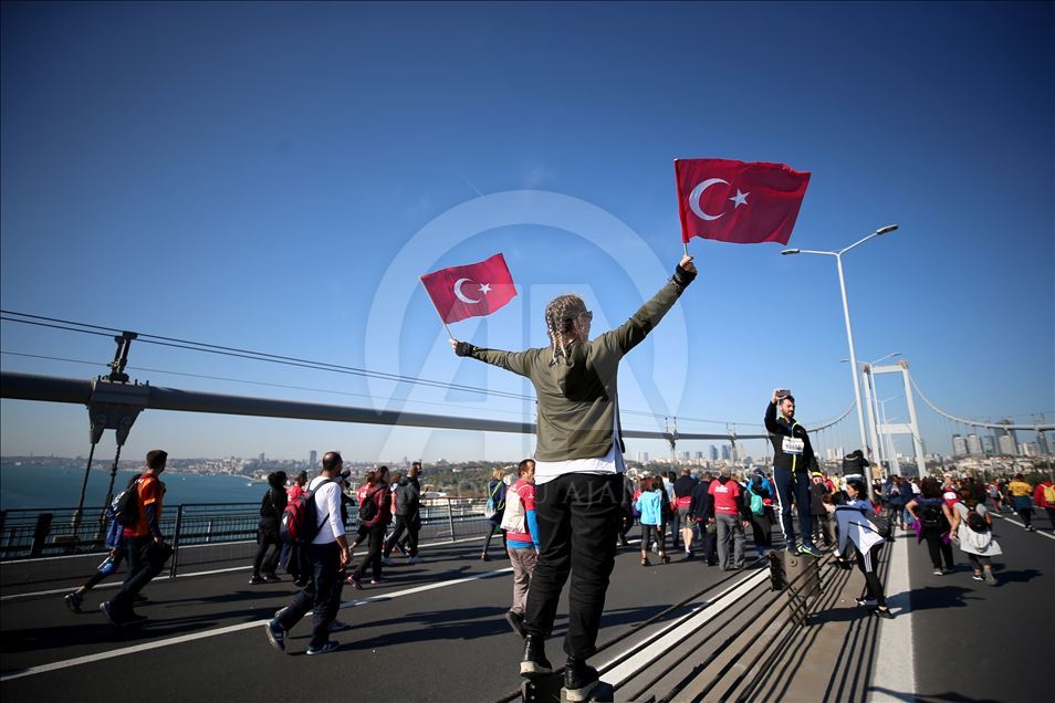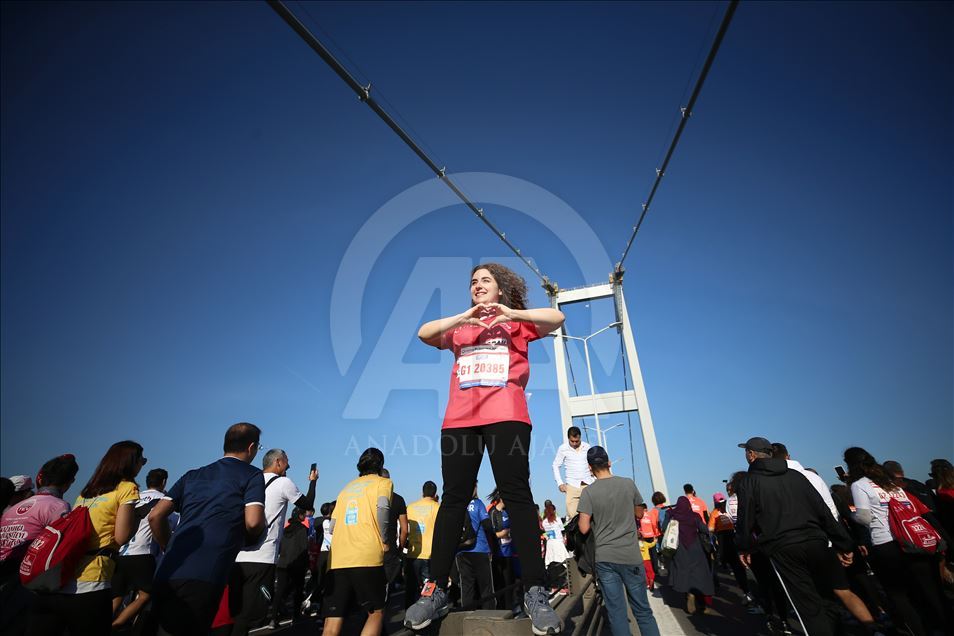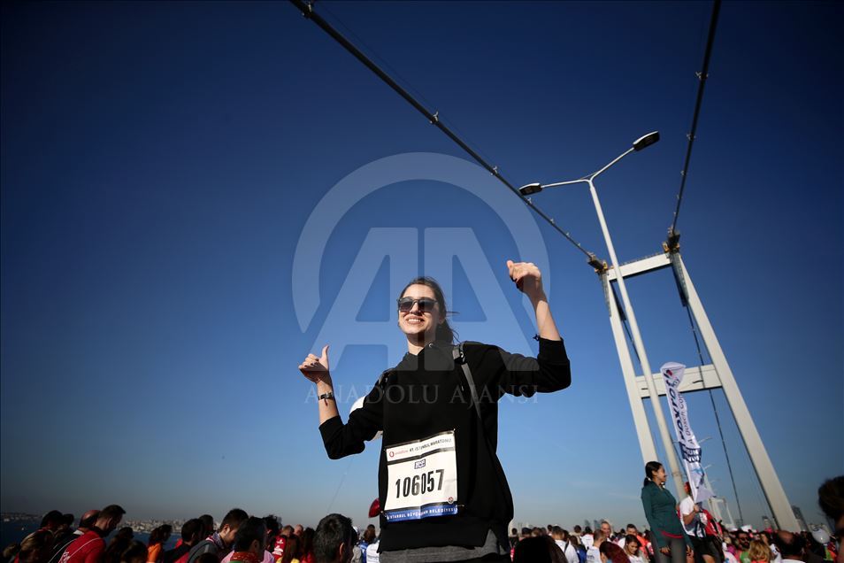 ISTANBUL, TURKEY - NOVEMBER 03: People attend the world's only intercontinental marathon 'Vodafone 41st Istanbul Marathon' in Istanbul, Turkey on November 03, 2019. ( Ahmet Bolat - Anadolu Agency )Ahmet Bolat