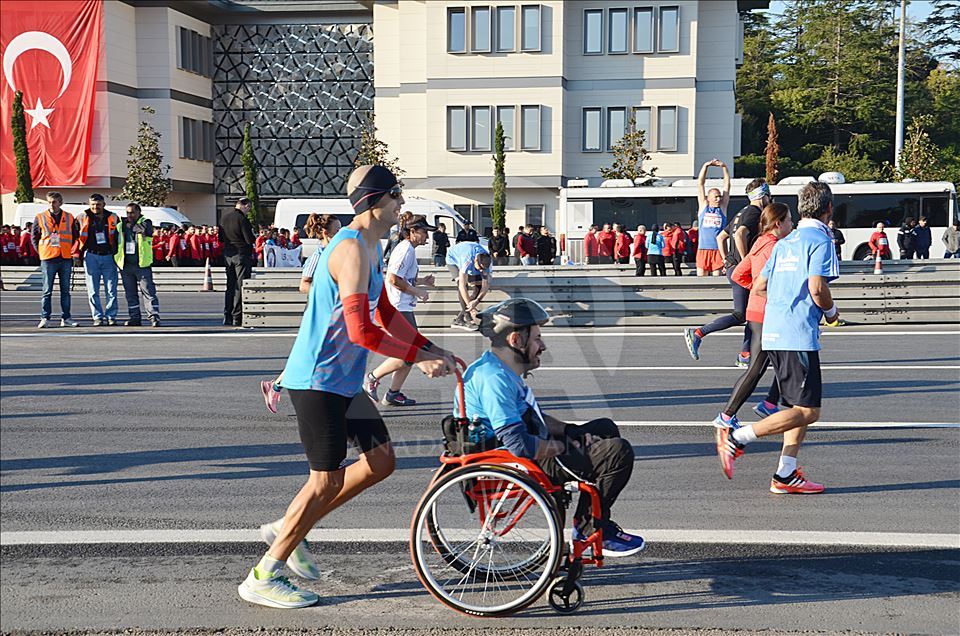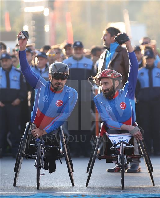 ISTANBUL, TURKEY - NOVEMBER 03: Participants compete in wheelchair category within the Vodafone 41th Istanbul Marathon, the world's only intercontinental marathon, that held by Spor Istanbul, a subsidiary of Istanbul Metropolitan Municipality in Istanbul, Turkey on November 03, 2019. ( Esra Bilgin - Anadolu Agency )Esra Bilgin