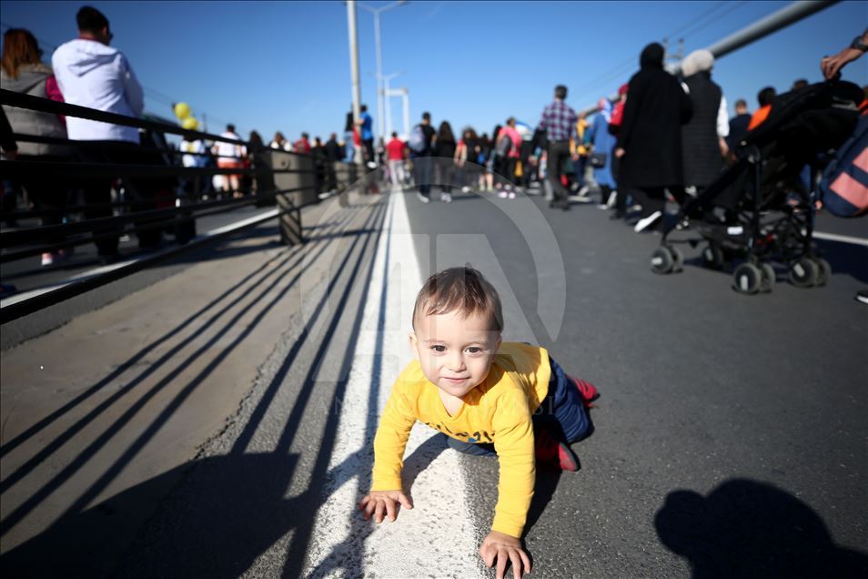 ISTANBUL, TURKEY - NOVEMBER 03: A baby crawls during the world's only intercontinental marathon 'Vodafone 41st Istanbul Marathon' in Istanbul, Turkey on November 03, 2019. ( Ahmet Bolat - Anadolu Agency )Ahmet Bolat