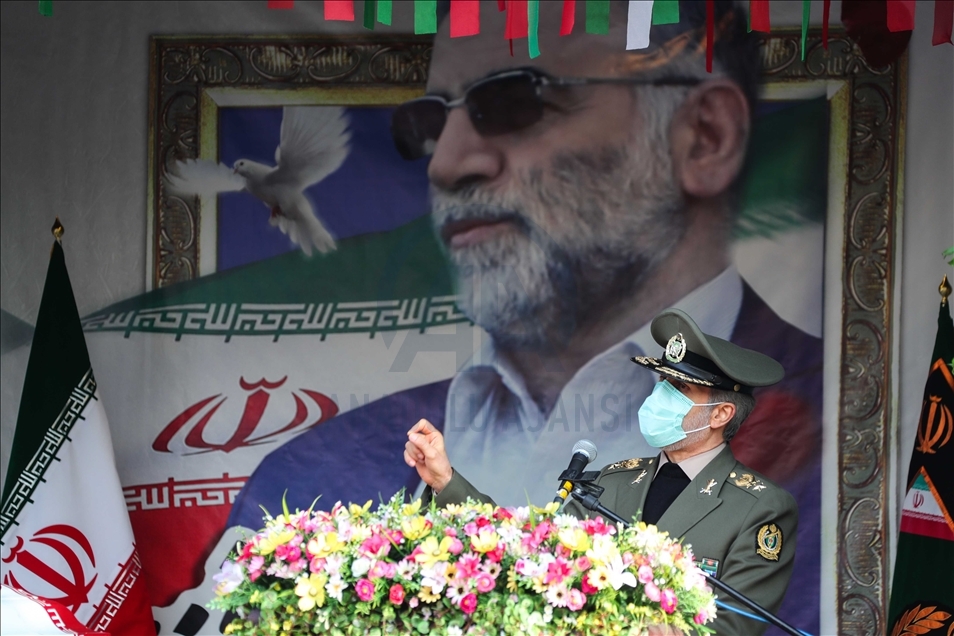 TEHRAN, IRAN - NOVEMBER 30: (----EDITORIAL USE ONLY – MANDATORY CREDIT - "IRANIAN DEFENSE MINISTRY / HANDOUT" - NO MARKETING NO ADVERTISING CAMPAIGNS - DISTRIBUTED AS A SERVICE TO CLIENTS----) Amir Hatami, Iranian Defense Minister makes a speech during a funeral ceremony of Iranian Top nuclear scientist, Mohsen Fakhrizadeh Mahabadi, held at Defense Ministry of Iran in Tehran, Iran on November 30, 2020. Fakhrizadeh, who headed research and innovation at the defense ministry, was attacked Friday in Damavand county near Tehran. ( Iranian Defense Ministry - Anadolu Agency )Iranian Defense Ministry
