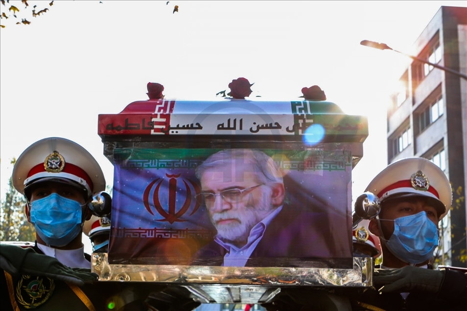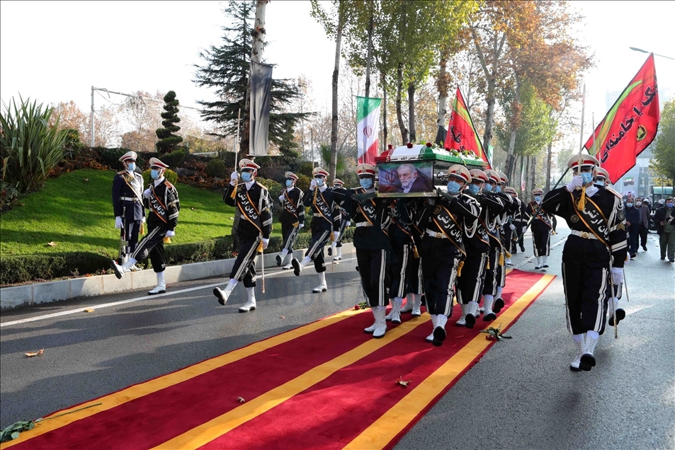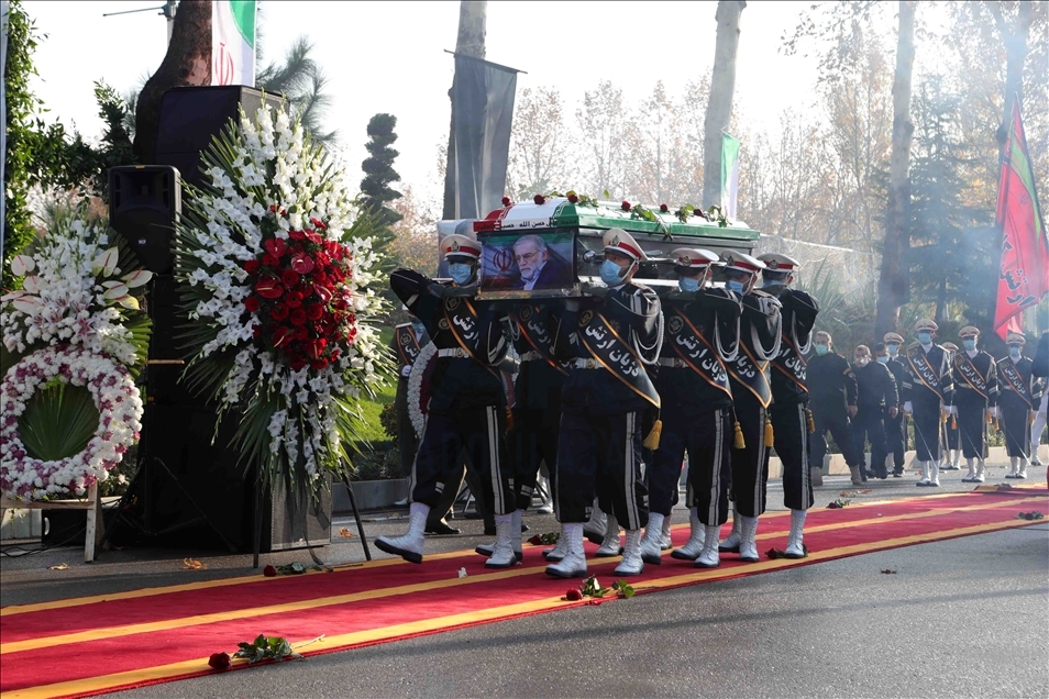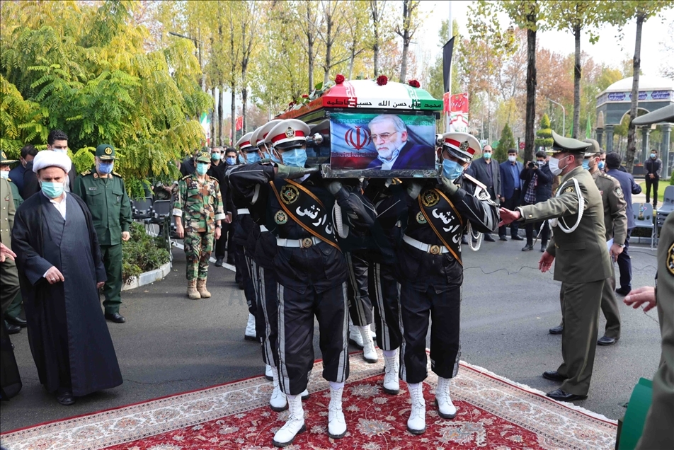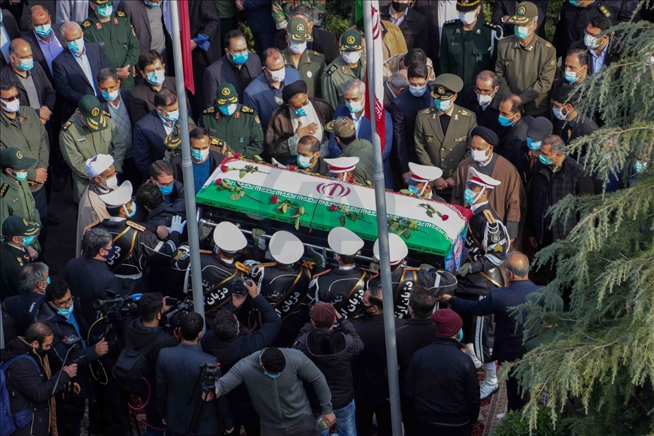 TEHRAN, IRAN - NOVEMBER 30: (----EDITORIAL USE ONLY – MANDATORY CREDIT - "IRANIAN DEFENSE MINISTRY / HANDOUT" - NO MARKETING NO ADVERTISING CAMPAIGNS - DISTRIBUTED AS A SERVICE TO CLIENTS----) A funeral ceremony of Iranian Top nuclear scientist, Mohsen Fakhrizadeh Mahabadi, held at Defense Ministry of Iran in Tehran, Iran on November 30, 2020. Fakhrizadeh, who headed research and innovation at the defense ministry, was attacked Friday in Damavand county near Tehran. ( Iranian Defense Ministry - Anadolu Agency )Iranian Defense Ministry