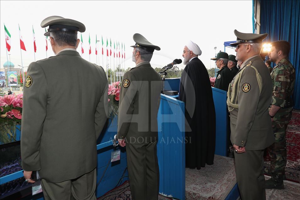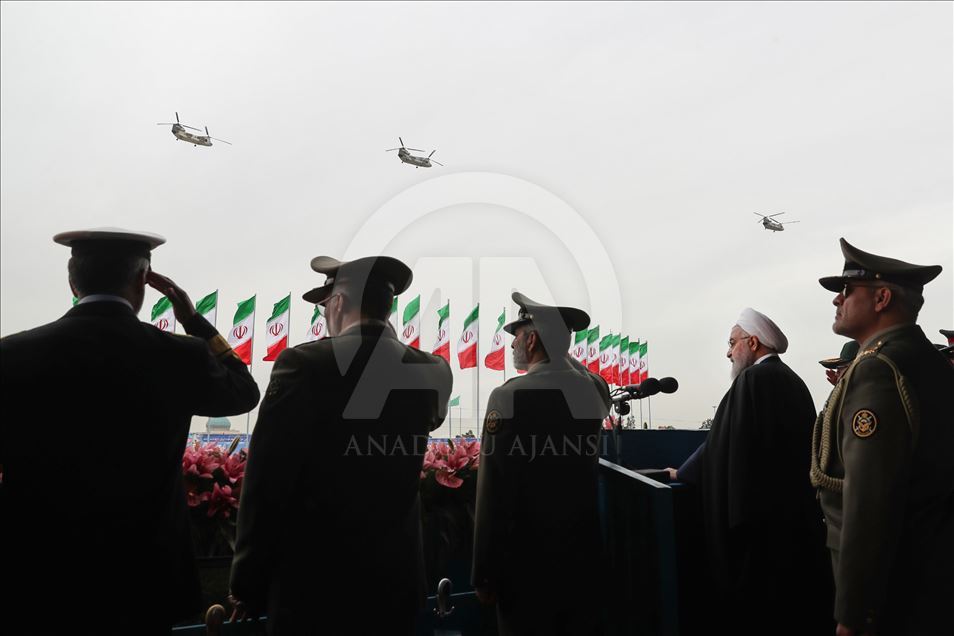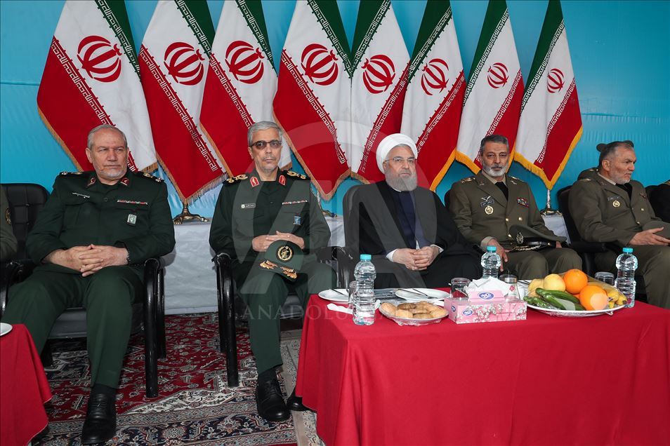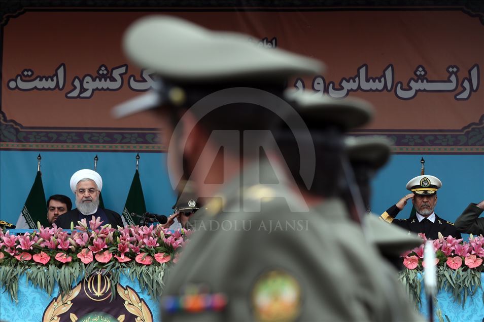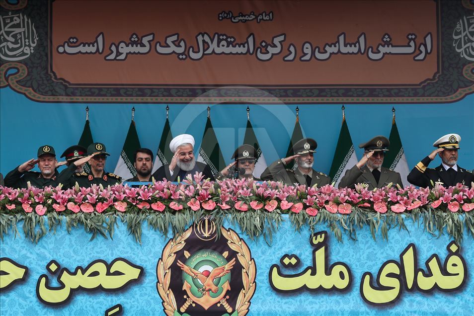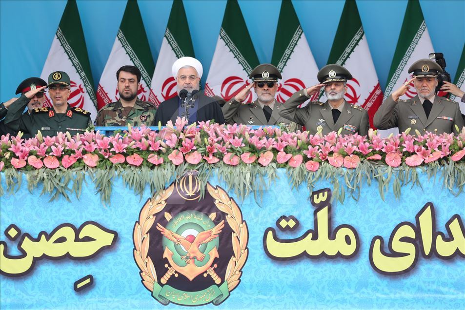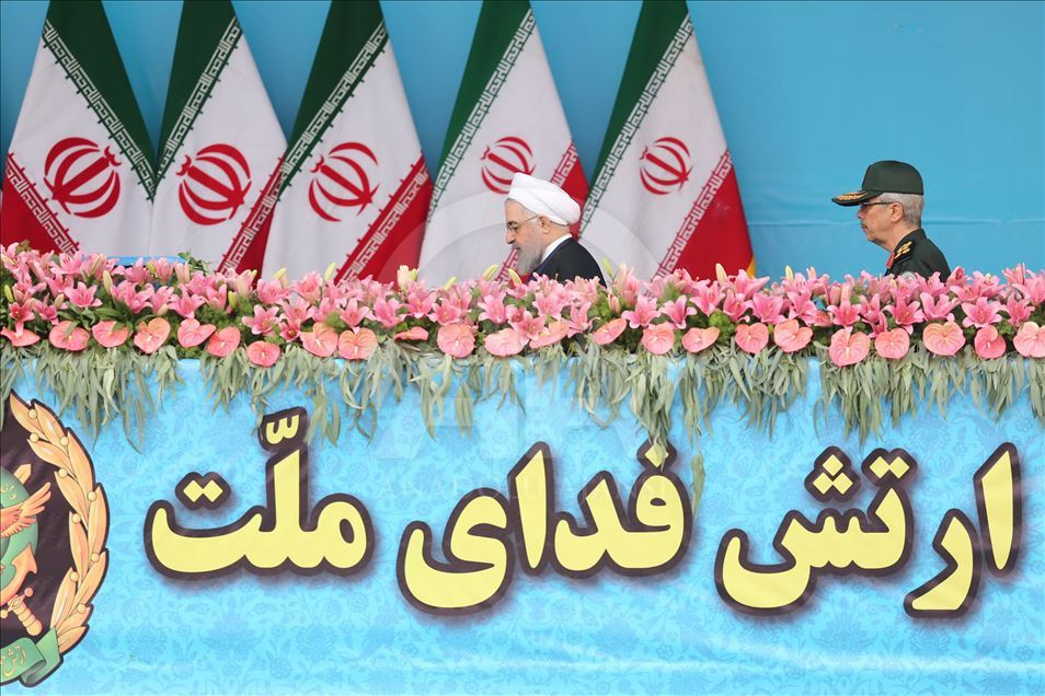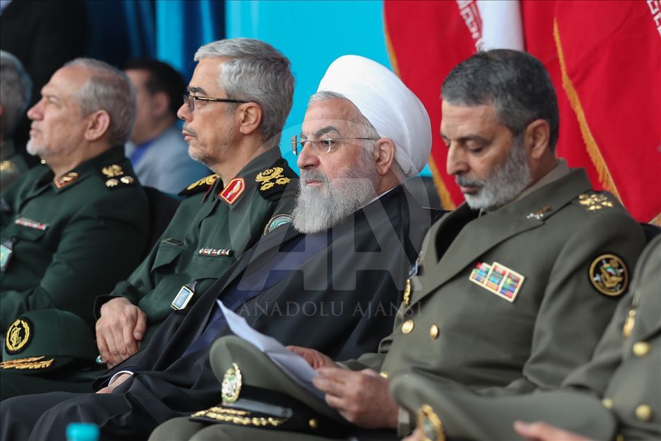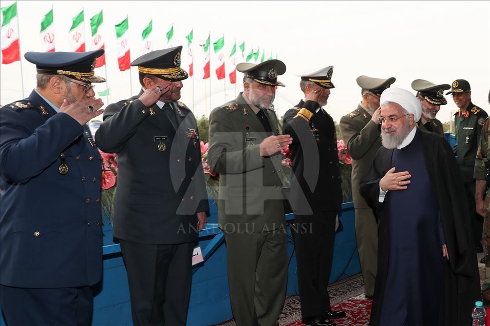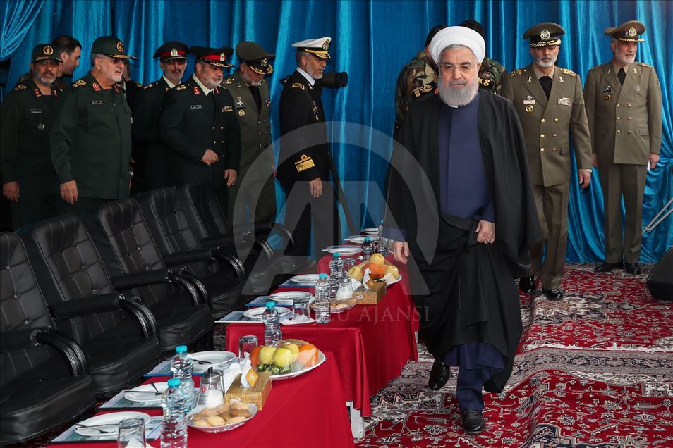 Iranian President Hassan Rouhani (R) attends military parade held to mark the National Army Day in Tehran, Iran on April 18, 2019. Military parades by units of Iranian land, air, naval and special forces took place within the ceremony.