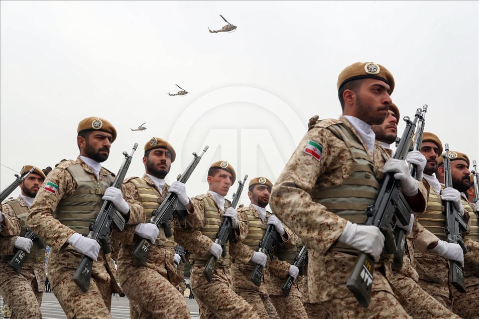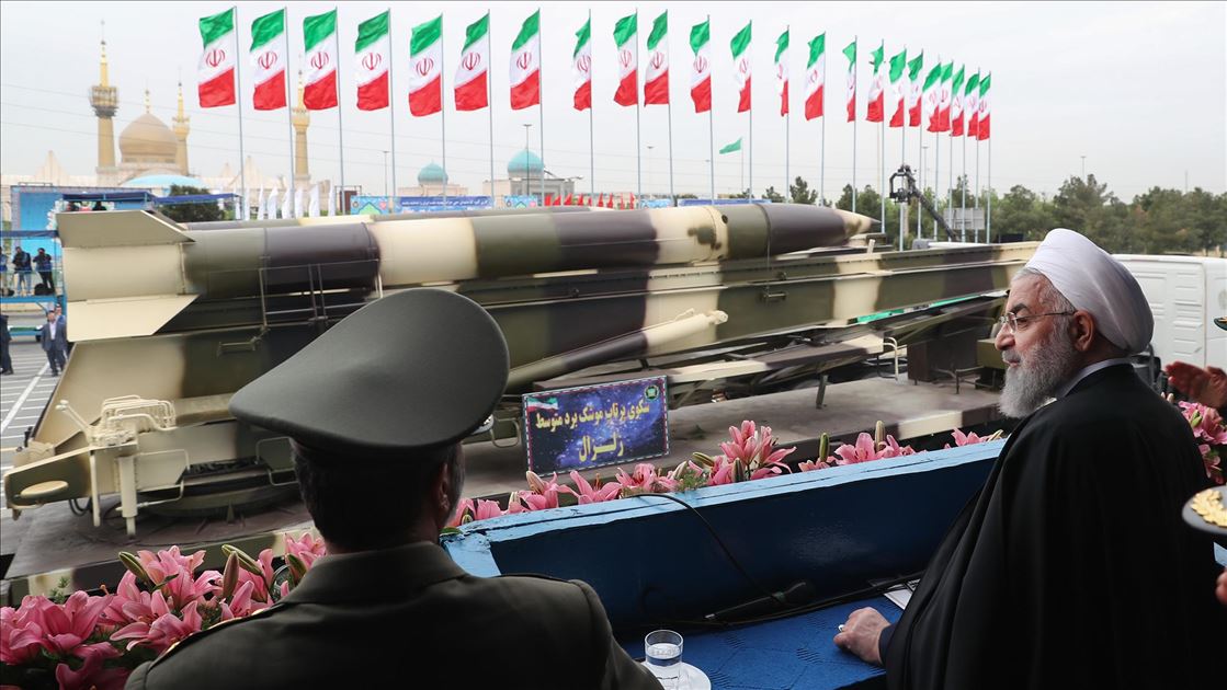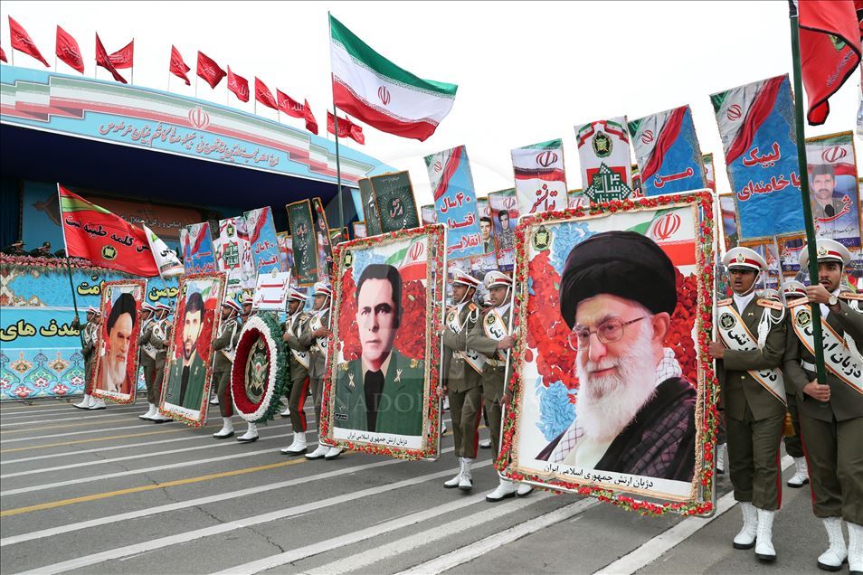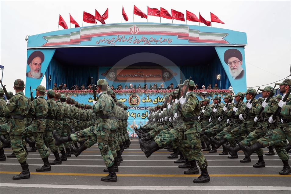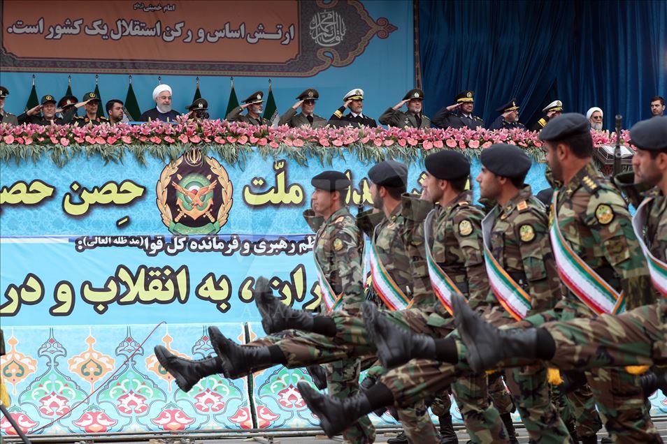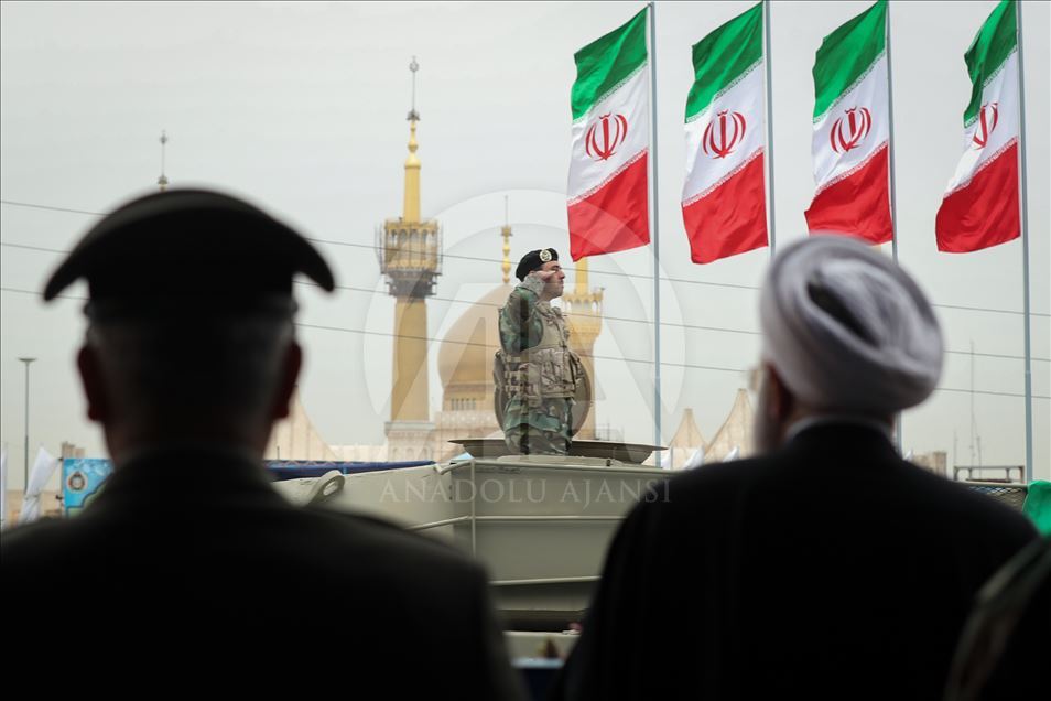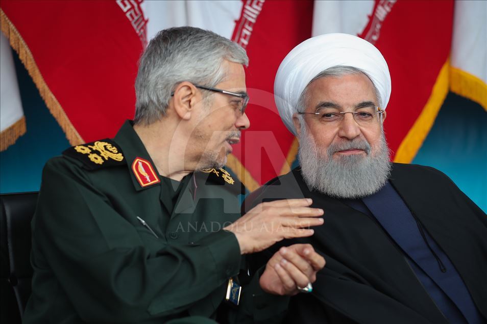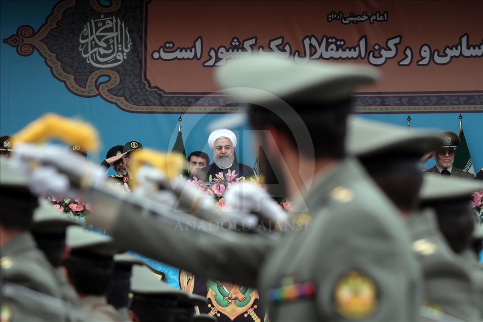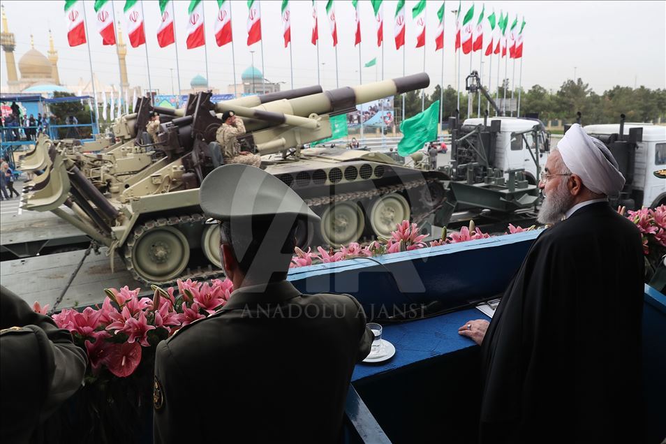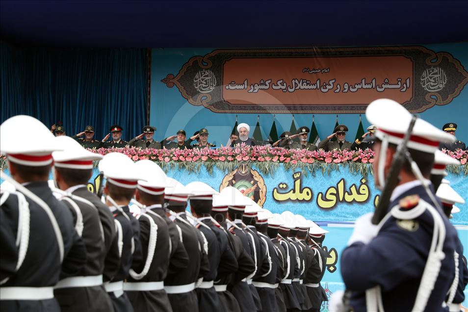 Iranian President Hassan Rouhani (R) attends military parade held to mark the National Army Day in Tehran, Iran on April 18, 2019. Military parades by units of Iranian land, air, naval and special forces took place within the ceremony.