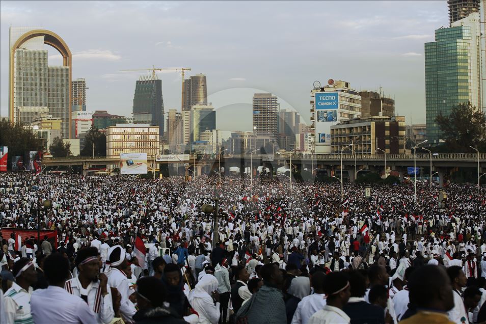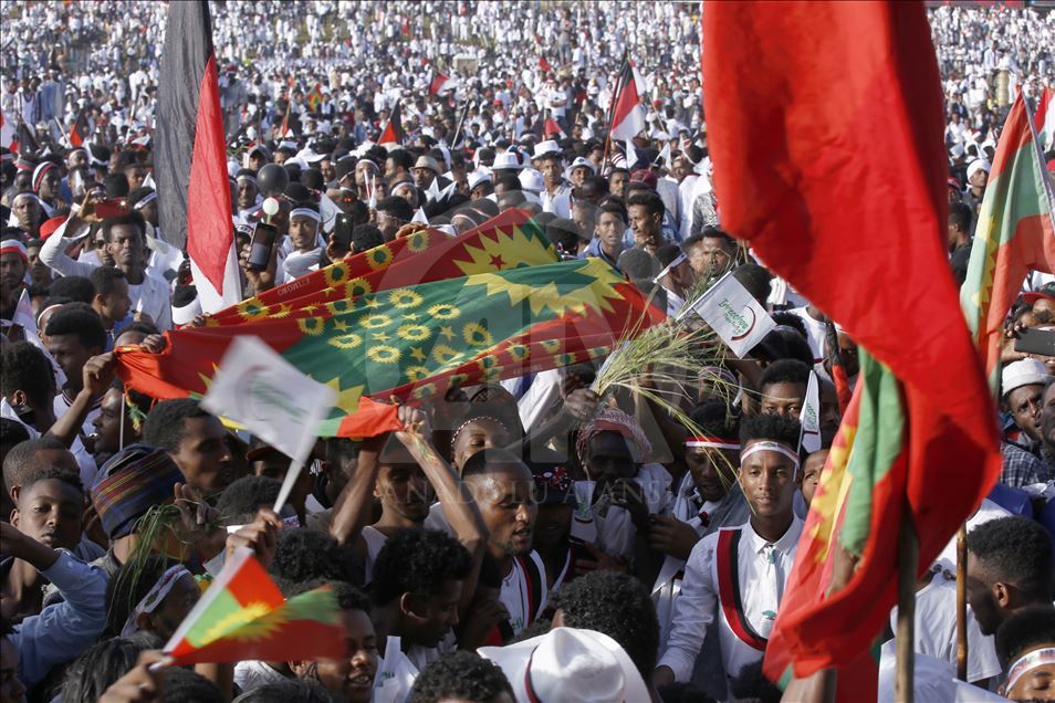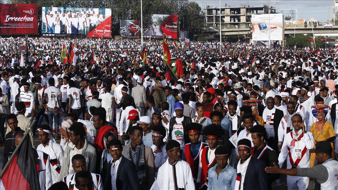 ADDIS ABABA, ETHIOPIA - OCTOBER 5: Thousands of Oromo people attend the "Irreecha" festival also known as ‘Oromo Thanksgiving’ in Addis Ababa, Ethiopia on October 5, 2019.