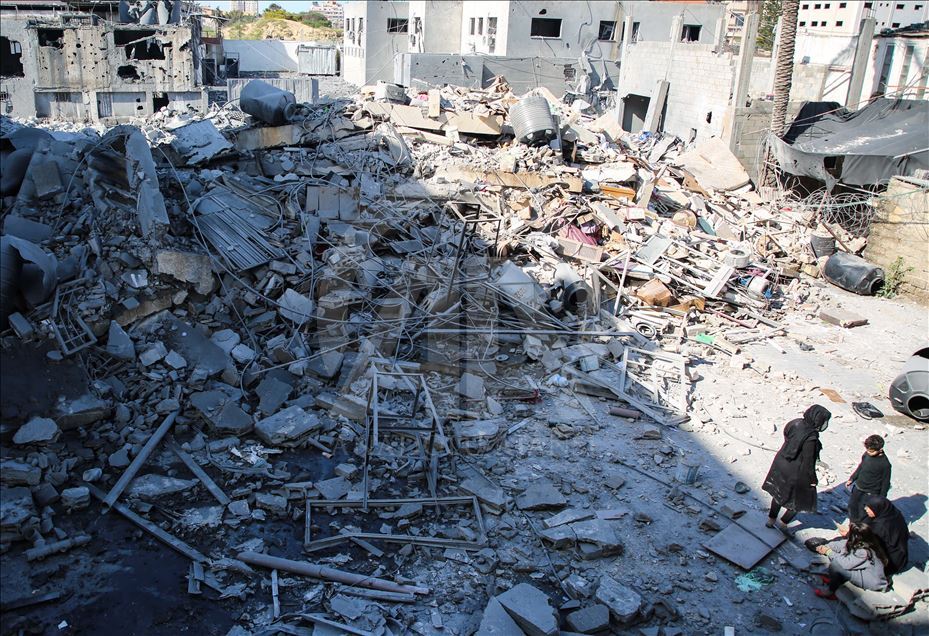 A damaged building is seen after Israeli warplanes carried out airstrike towards Hassona building in Rimal neighbourhood of Gaza City, Gaza on March 26, 2019.