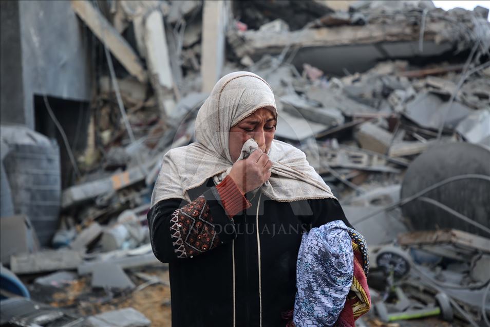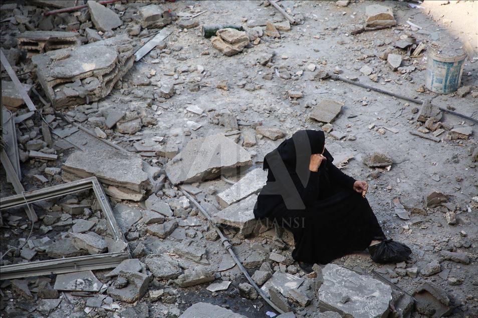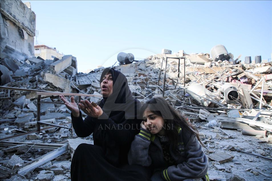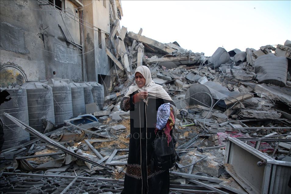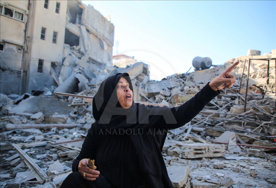 GAZA CITY, GAZA - MARCH 26: A resident, Maryam El Shawa reacts at wreckage of Hassona building after Israeli warplanes carried out airstrike towards the building in Rimal neighbourhood of Gaza City, Gaza on March 26, 2019. ( Hassan Jedi - Anadolu Agency )Hassan Jedi