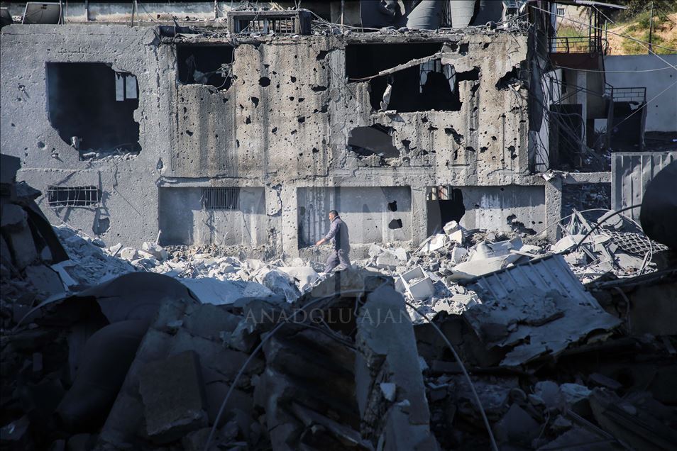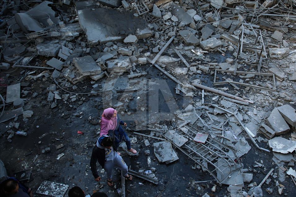 GAZA CITY, GAZA - MARCH 26: People inspect a damaged building after Israeli warplanes carried out airstrike towards Hassona building in Rimal neighbourhood of Gaza City, Gaza on March 26, 2019. ( Hassan Jedi - Anadolu Agency )Hassan Jedi