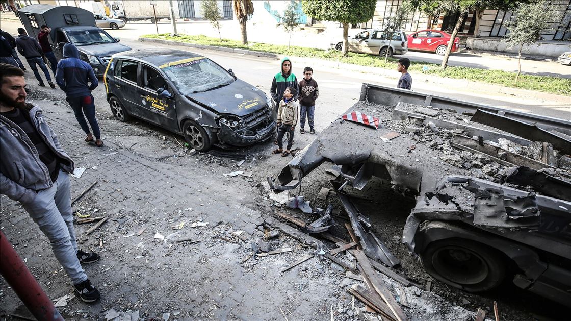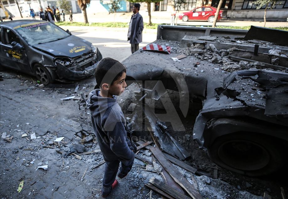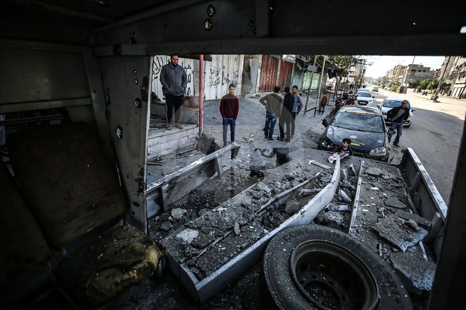 BEIT LAHIA, GAZA - MARCH 26: A view from a wrecked vehicle after Israeli warplanes hit Beit Lahia, Gaza on March 26, 2019. ( Mustafa Hassona - Anadolu Agency )Mustafa Hassona