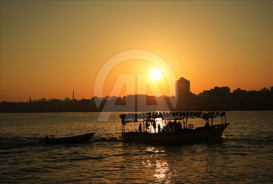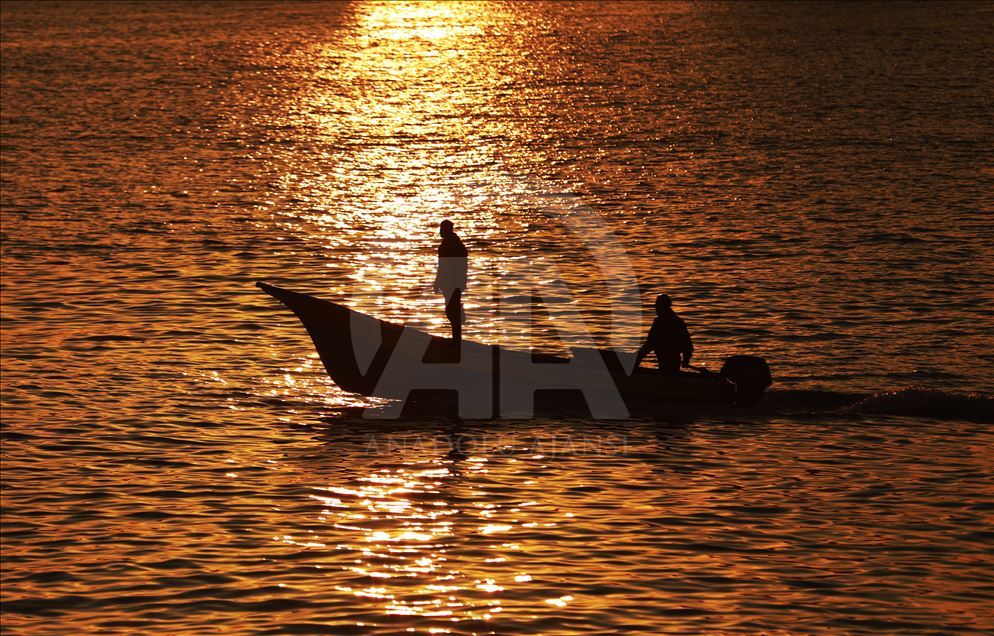 GAZA CITY, GAZA - APRIL 3: Palestinians are fishing as Israel increases fishing zone for Palestinian fishermen off Gaza's coast in Gaza on April 3, 2019.