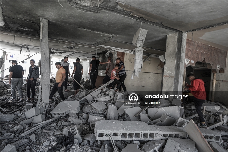 Palestinians inspect at debris of a building after airstrikes by Israeli army hit buildings in Gaza City, Gaza on May 17, 2021.