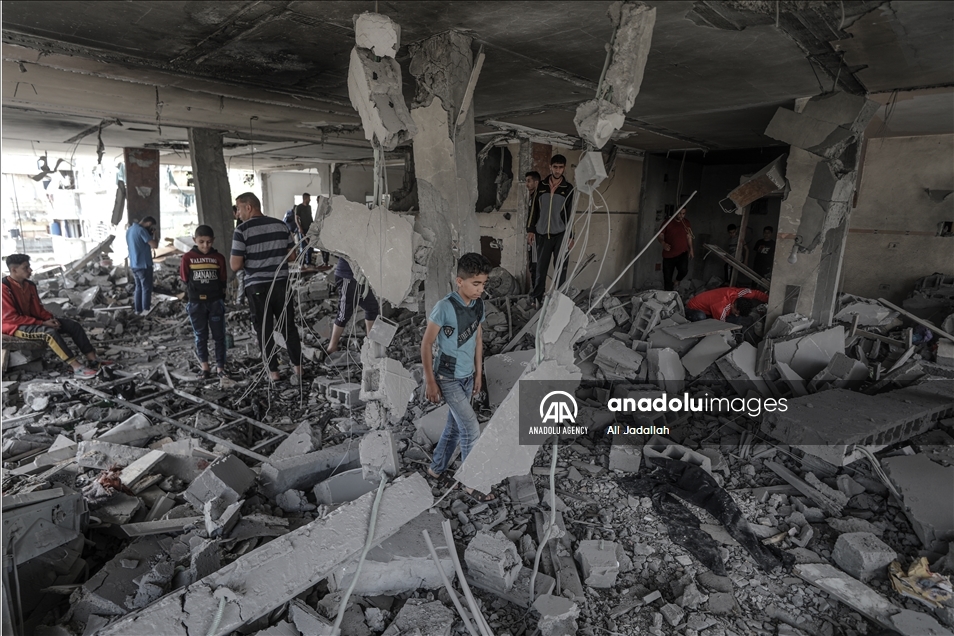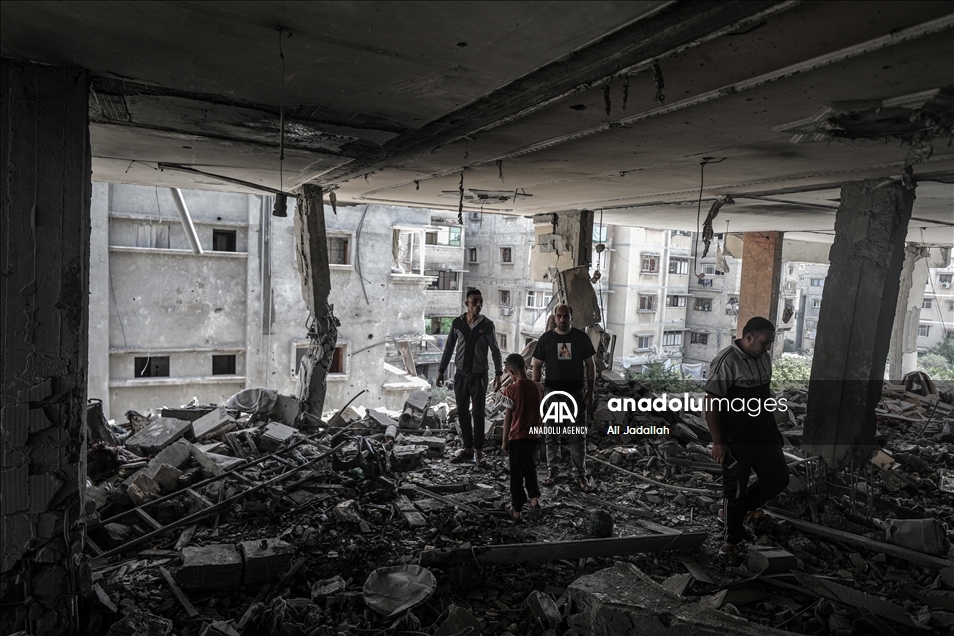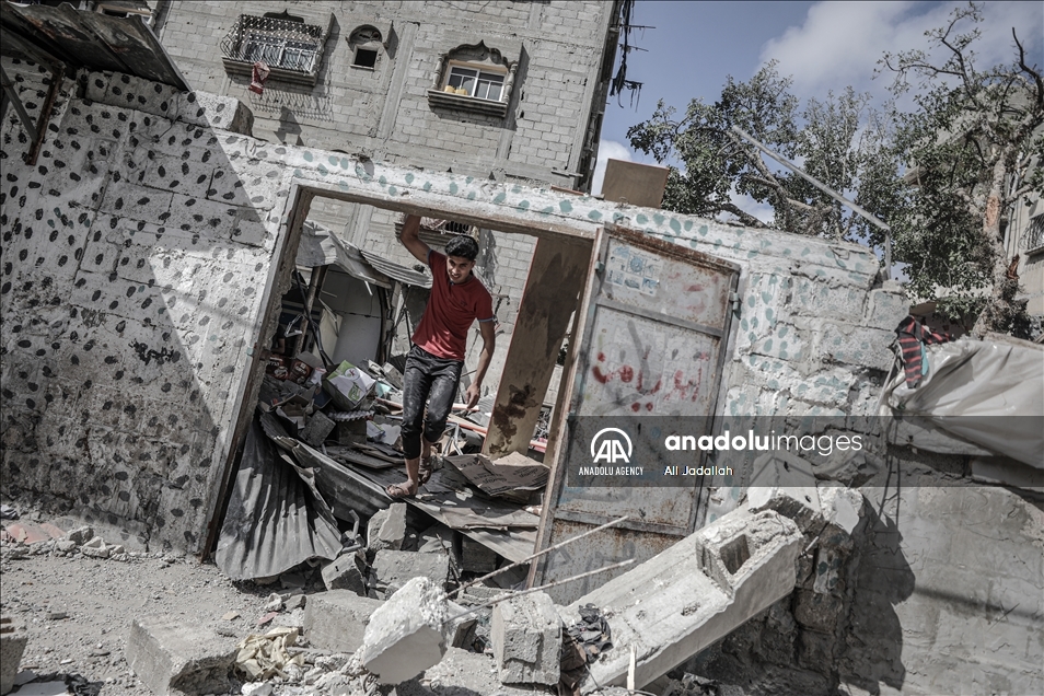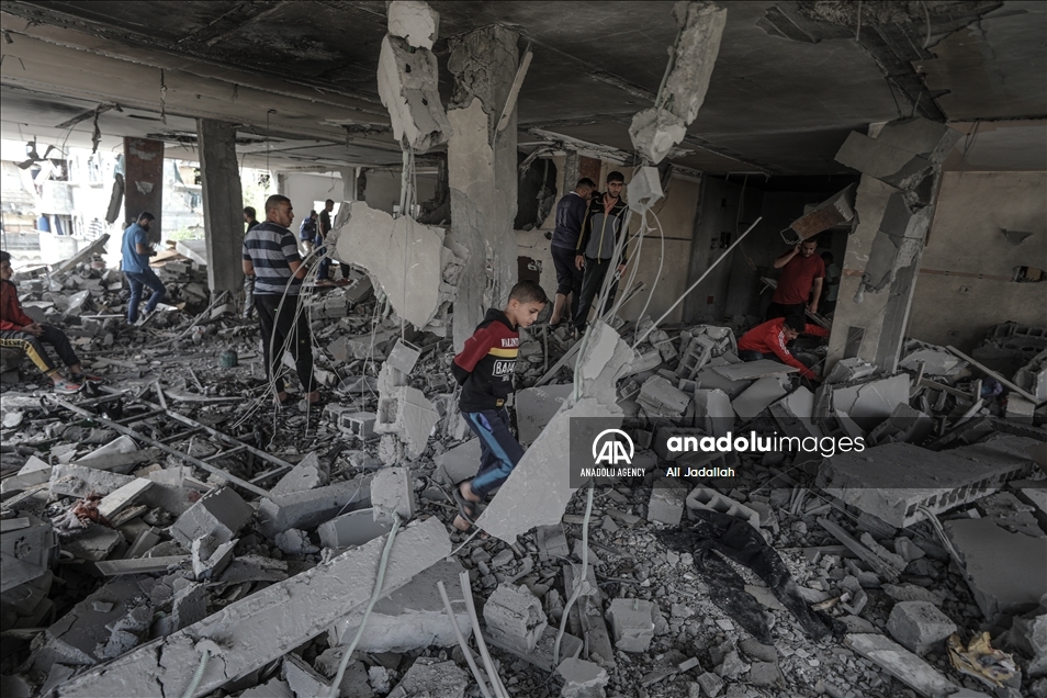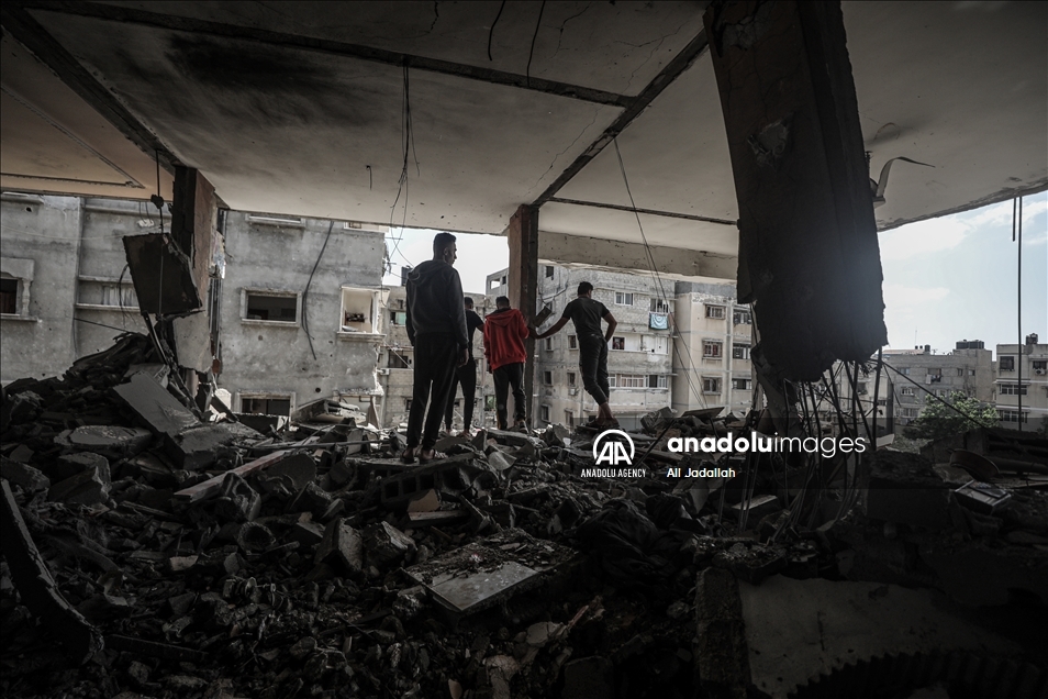 GAZA CITY, GAZA - MAY 17: Palestinians inspect at debris of a building after airstrikes by Israeli army hit buildings in Gaza City, Gaza on May 17, 2021. ( Ali Jadallah - Anadolu Agency )Ali Jadallah