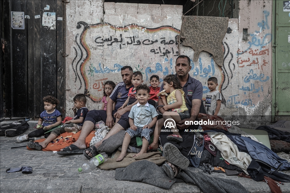GAZA CITY, GAZA - MAY 17: Children and Palestinian men are seen near debris of a building after airstrikes by Israeli army hit buildings in Gaza City, Gaza on May 17, 2021. ( Ali Jadallah - Anadolu Agency )Ali Jadallah