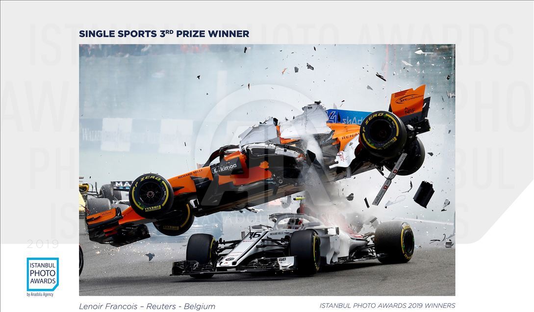 (WARNING: Attached photo is only available for news to promote Istanbul Photo Awards contest.) Reuters photographer Lenoir Francois, 46, from Belgium, got third in the Single Sports Category with "F1 accident on Spa-Francorchamps" entitled photo within the Istanbul Photo Awards 2019 which is Anadolu Agency's fifth international news photography contest. ( Lenoir Francois / Reuters - Anadolu Agency )Lenoir Francois / Reuters
