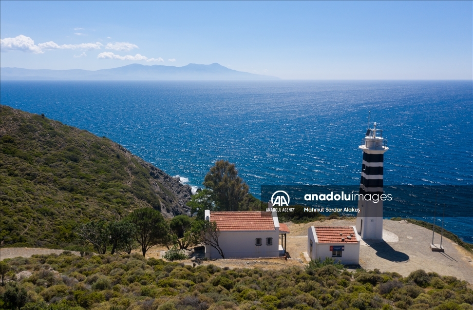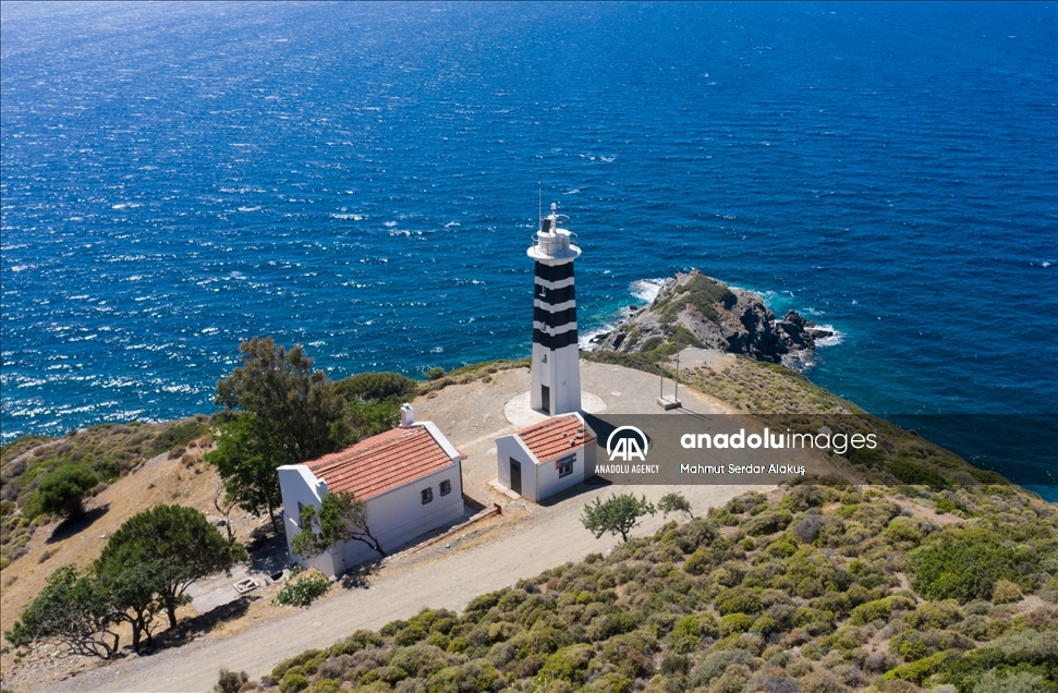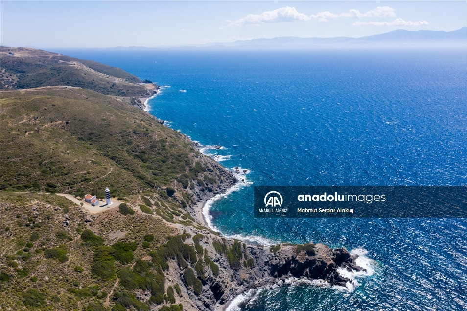 IZMIR, TURKEY - JUNE 19: A drone photo shows a lighthouse in Karaburun Peninsula in Izmir, Turkey on June 19, 2021. The peninsula, which is declared as a Special Environmental Protection Area, offers an alternative for those who want to have a holiday in Turkey with its coves suitable for swimming, cliffs stretching out to the sea, fauna and flora. ( Mahmut Serdar Alakuş - Anadolu Agency )Mahmut Serdar Alakuş