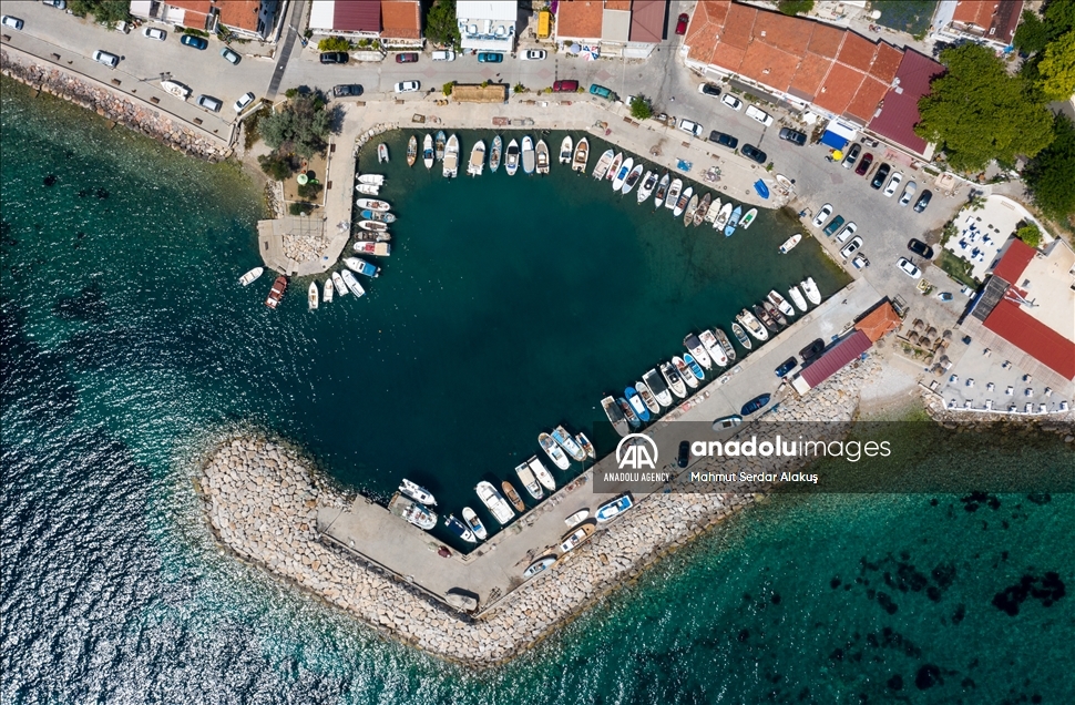 IZMIR, TURKEY - JUNE 19: A drone photo shows a harbor in Karaburun Peninsula in Izmir, Turkey on June 19, 2021. The peninsula, which is declared as a Special Environmental Protection Area, offers an alternative for those who want to have a holiday in Turkey with its coves suitable for swimming, cliffs stretching out to the sea, fauna and flora. ( Mahmut Serdar Alakuş - Anadolu Agency )Mahmut Serdar Alakuş