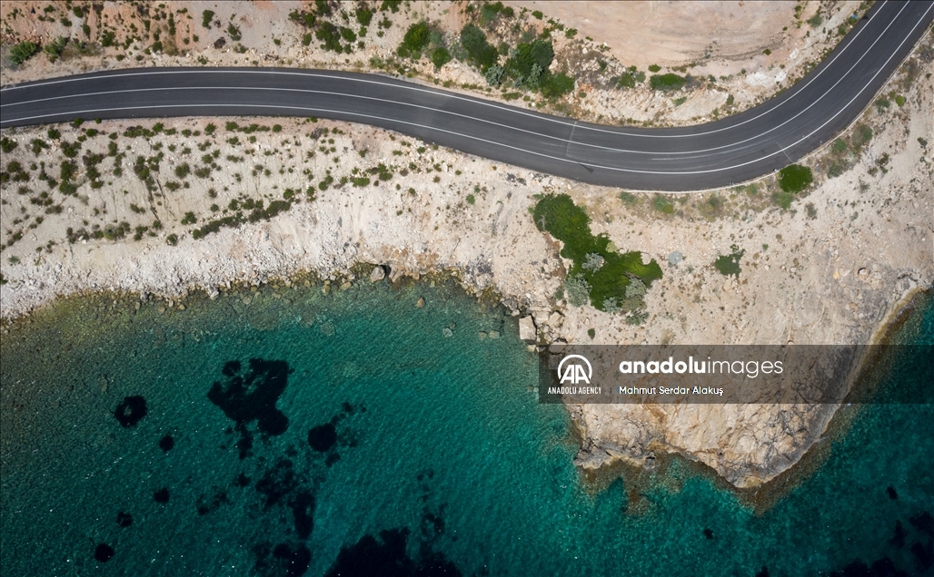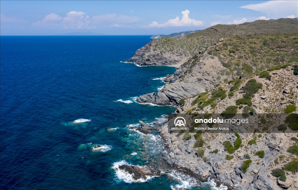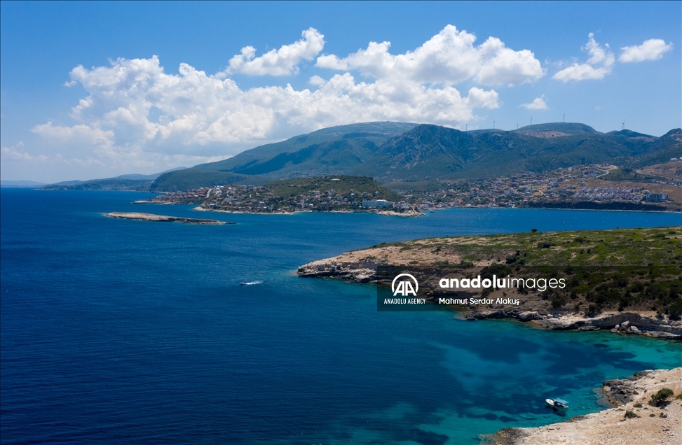 IZMIR, TURKEY - JUNE 19: A drone photo shows Karaburun Peninsula in Izmir, Turkey on June 19, 2021. The peninsula, which is declared as a Special Environmental Protection Area, offers an alternative for those who want to have a holiday in Turkey with its coves suitable for swimming, cliffs stretching out to the sea, fauna and flora. ( Mahmut Serdar Alakuş - Anadolu Agency )Mahmut Serdar Alakuş
